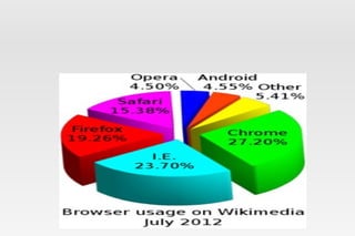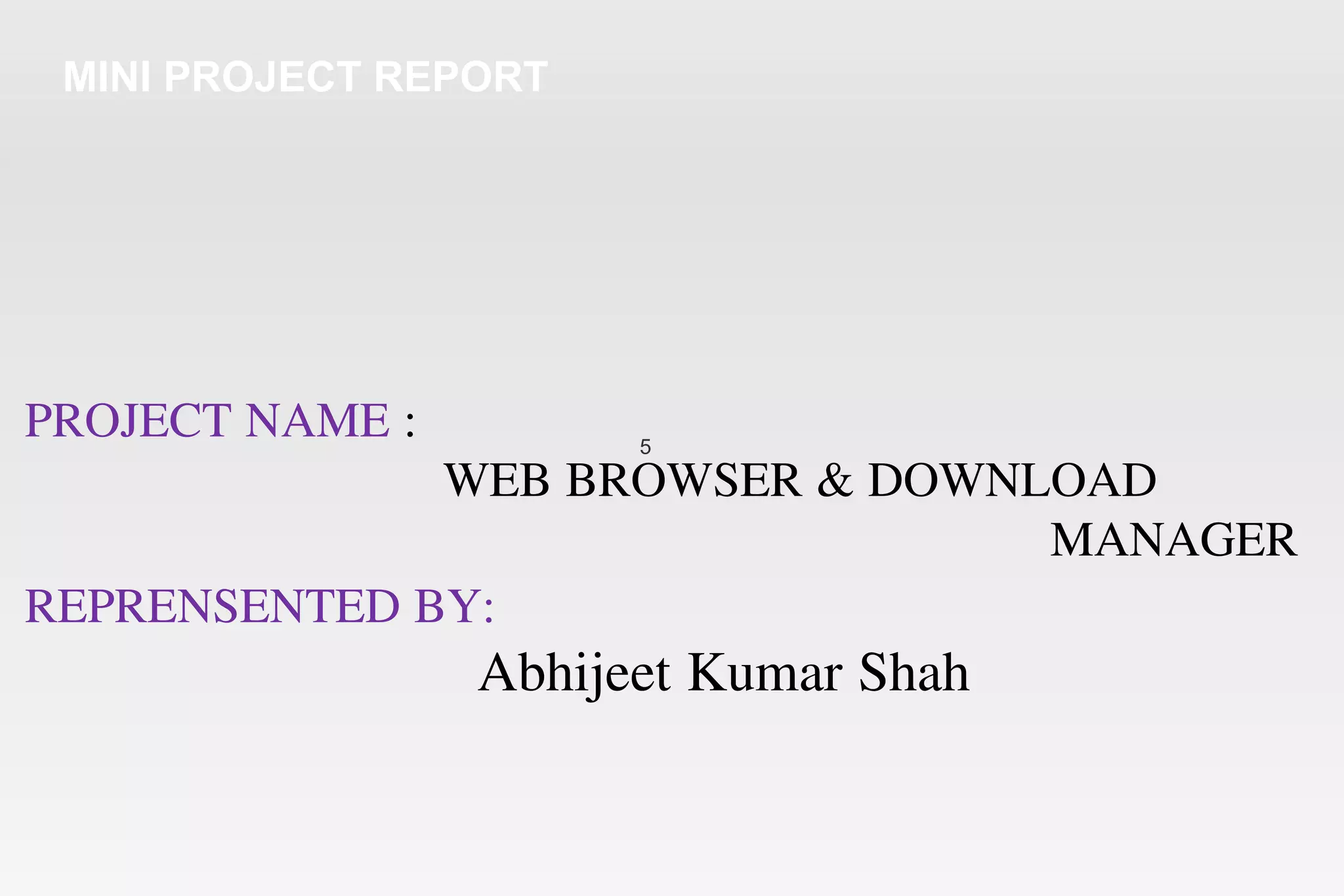 This document discusses a mini project report on a web browser and download manager. It provides details on the history and components of web browsers, including the user interface, browser structure, rendering engine, parsing process, DOM tree construction, and layout during rendering. The major sections covered include the introduction to browsers and the web, browser history from 1990 to present, user interface elements, browser components and parsing process, and rendering engine details.