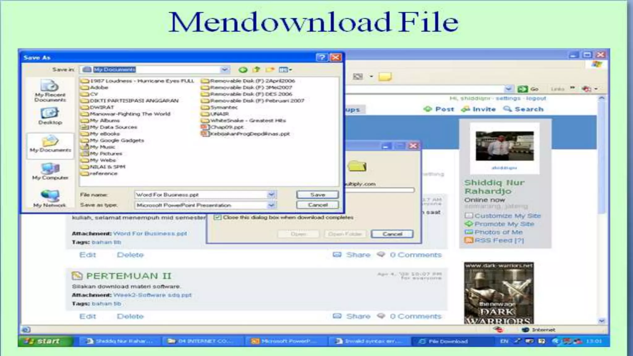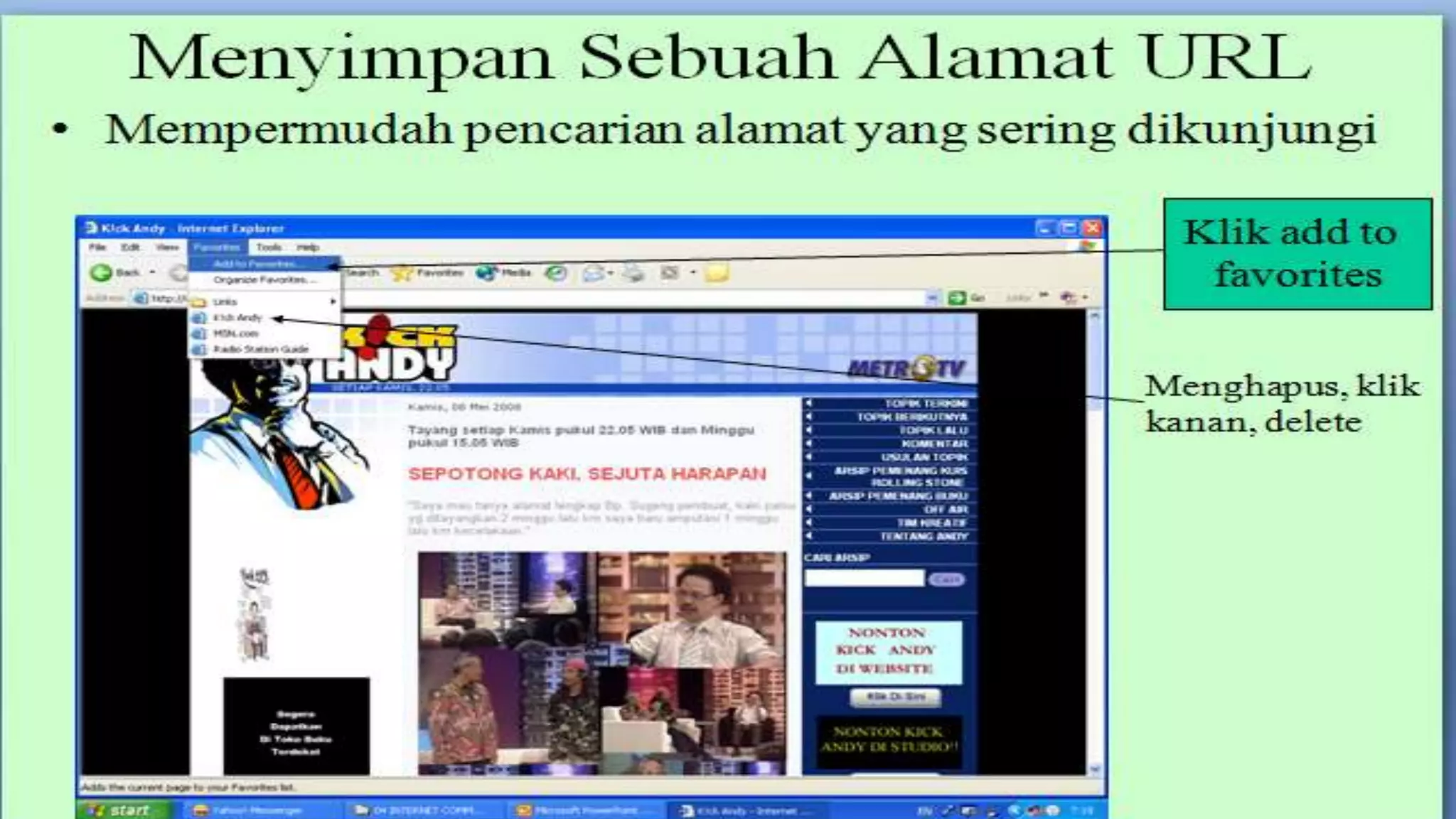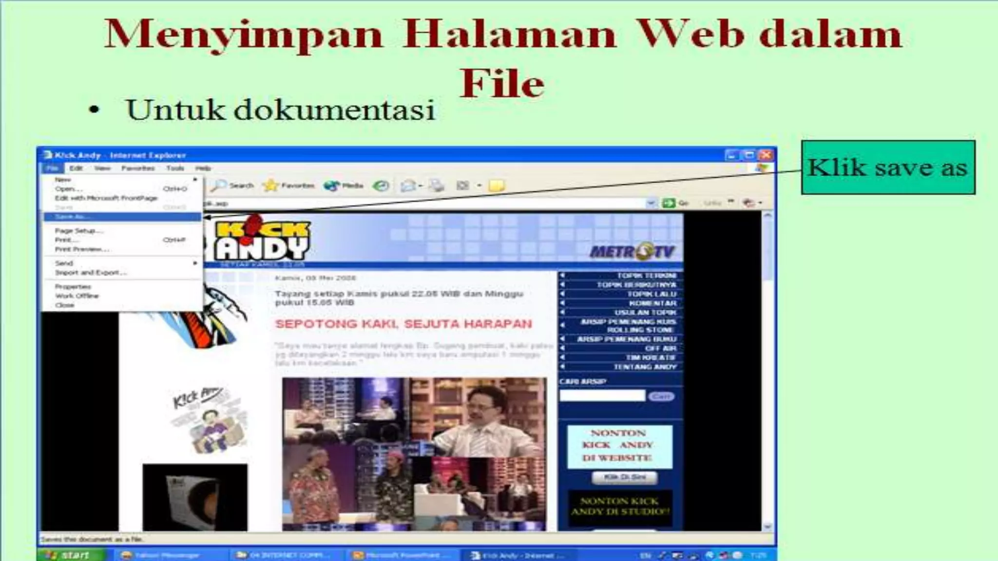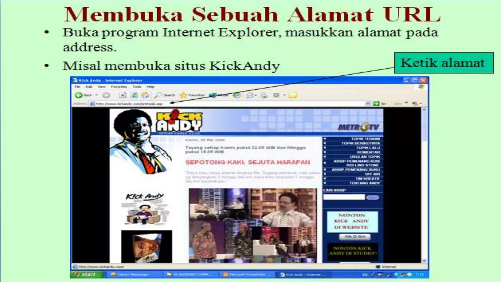Web browser dan search engine memberikan cara untuk mengakses dan mencari informasi di internet. Web browser seperti Firefox dan Chrome memungkinkan pengguna menelusuri situs web, sementara search engine seperti Google memudahkan pencarian konten secara online.