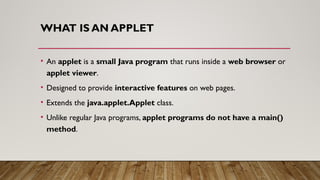 • Static Applets: Display fixed output; do not respond to user interaction.