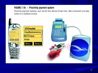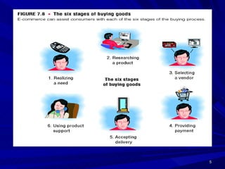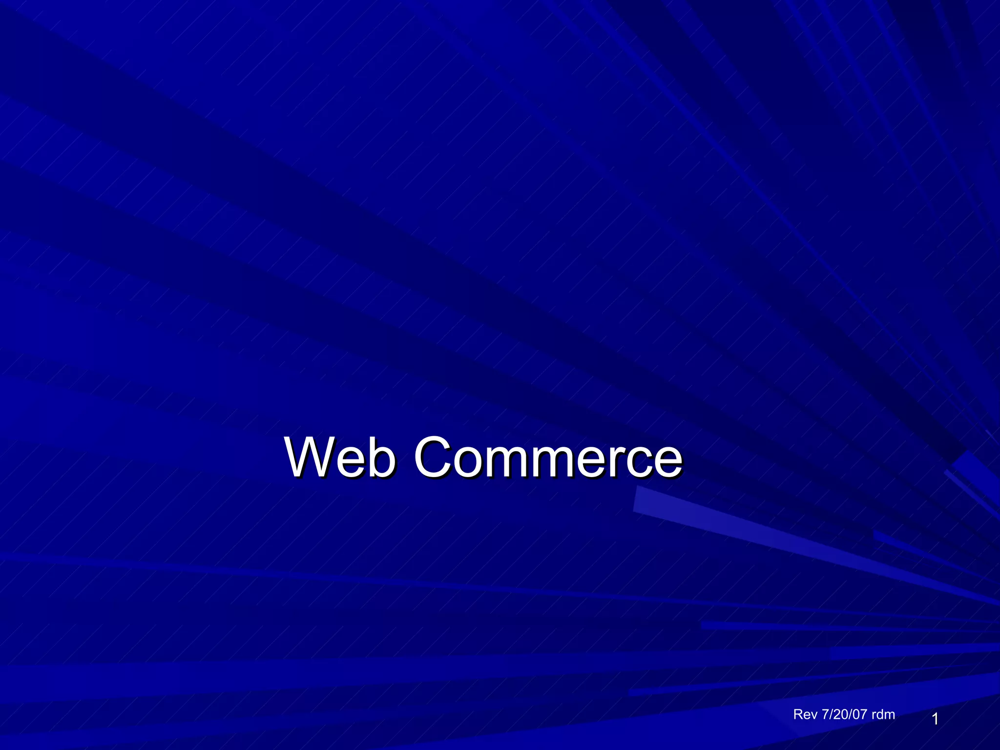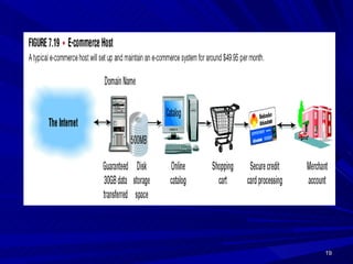 This document defines e-commerce and discusses its various types and applications. It outlines the key components of an e-commerce system, including the three main types (B2C, B2B, C2C), benefits and challenges, and how mobile commerce is impacting the industry. The implementation of an e-commerce system requires investment in infrastructure, hardware, networking, and security to support online transactions and build customer trust.