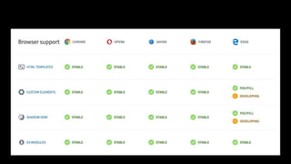 The document discusses Week 4 of a web development course focusing on web components and package managers, highlighting their significance in modern web development. It covers terms, definitions, and the benefits of web components, including their ability to create reusable custom elements which streamline design and development processes. The document also emphasizes the emerging nature of web components and their potential to replace traditional development frameworks, encouraging students to explore and integrate them into future projects.