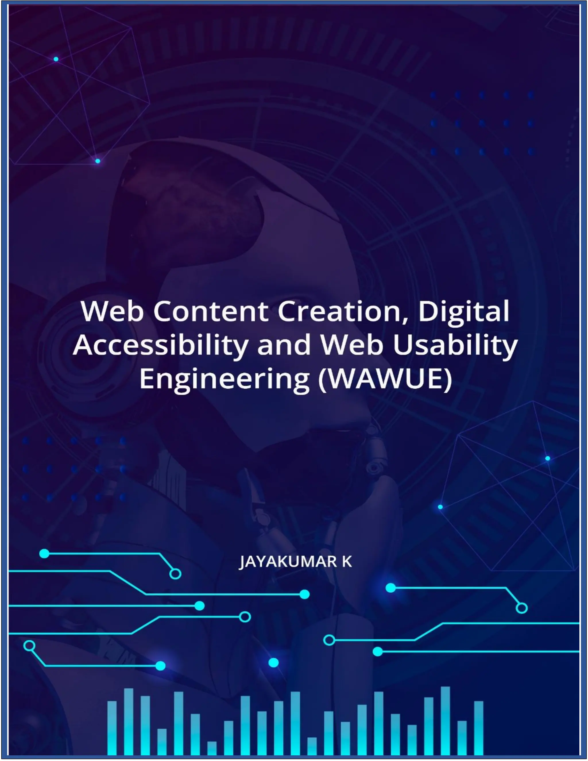 The document titled 'Web Content Creation, Digital Accessibility and Web Usability Engineering (WAWUE)' by Jayakumar K provides a comprehensive overview of content creation strategies, digital accessibility principles, and web usability practices for enhanced online engagement. It covers various topics including content optimization, readability testing, the importance of ARIA in HTML, and best practices for ensuring accessibility in web design. The material is intended for educational purposes and emphasizes the significance of digital content in influencing user behavior and improving search engine visibility.
