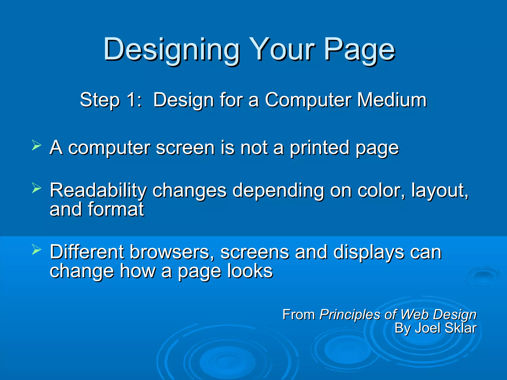 This document provides guidance on designing effective web pages. It discusses how to design for the computer medium by considering readability across different browsers and screens. It recommends planning page hierarchy by determining how pages are linked and where users will navigate next. The document also offers tips on designing content, such as naming files logically, using consistent design, and avoiding excessive scrolling. Overall, it outlines important steps and best practices for web page design.