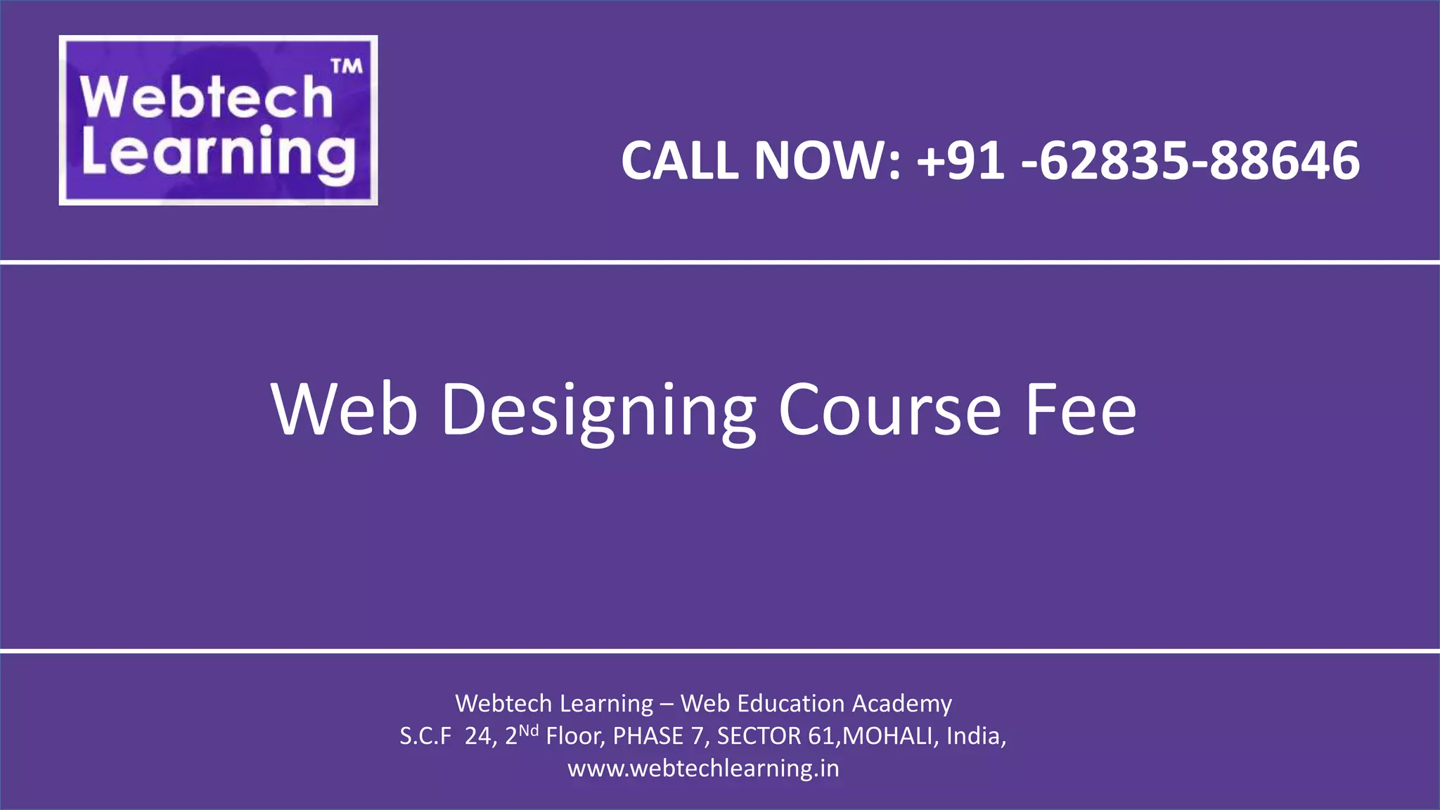 Webtech Learning Academy is an ISO certified institution located in Mohali, India that provides web design courses. The document advertises Webtech's web design courses, which include professional instruction, certifications, practical training, and backup classes over 3 months. Course fees range from 15k for short term courses to 25k for full basic to advanced courses, and special offers are available for IT students with options to pay via EMI.