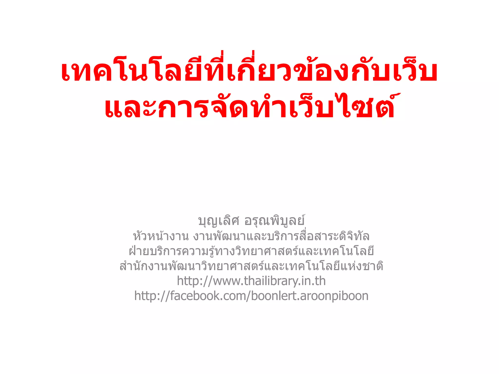 - Web Master การติดตังและปรับแต่ง CMS การจัดการสมาชก