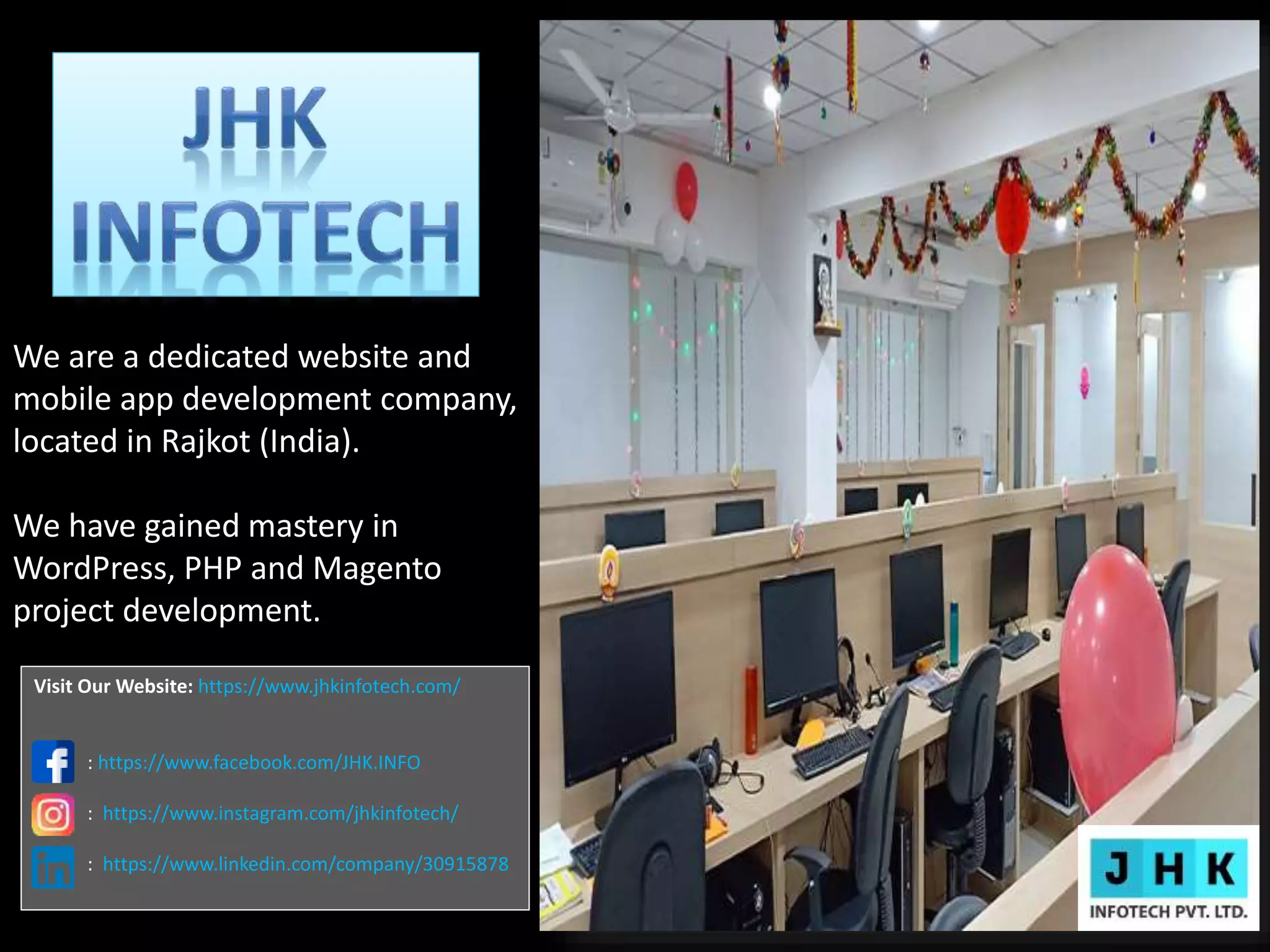 JHK Infotech is a website and mobile app development company located in Rajkot, India that specializes in WordPress, PHP, and Magento projects. It provides a wide range of digital services including web design, development, mobile app development, SEO, and more. The company is committed to delivering high quality work on time and aims to build lifelong relationships with clients.