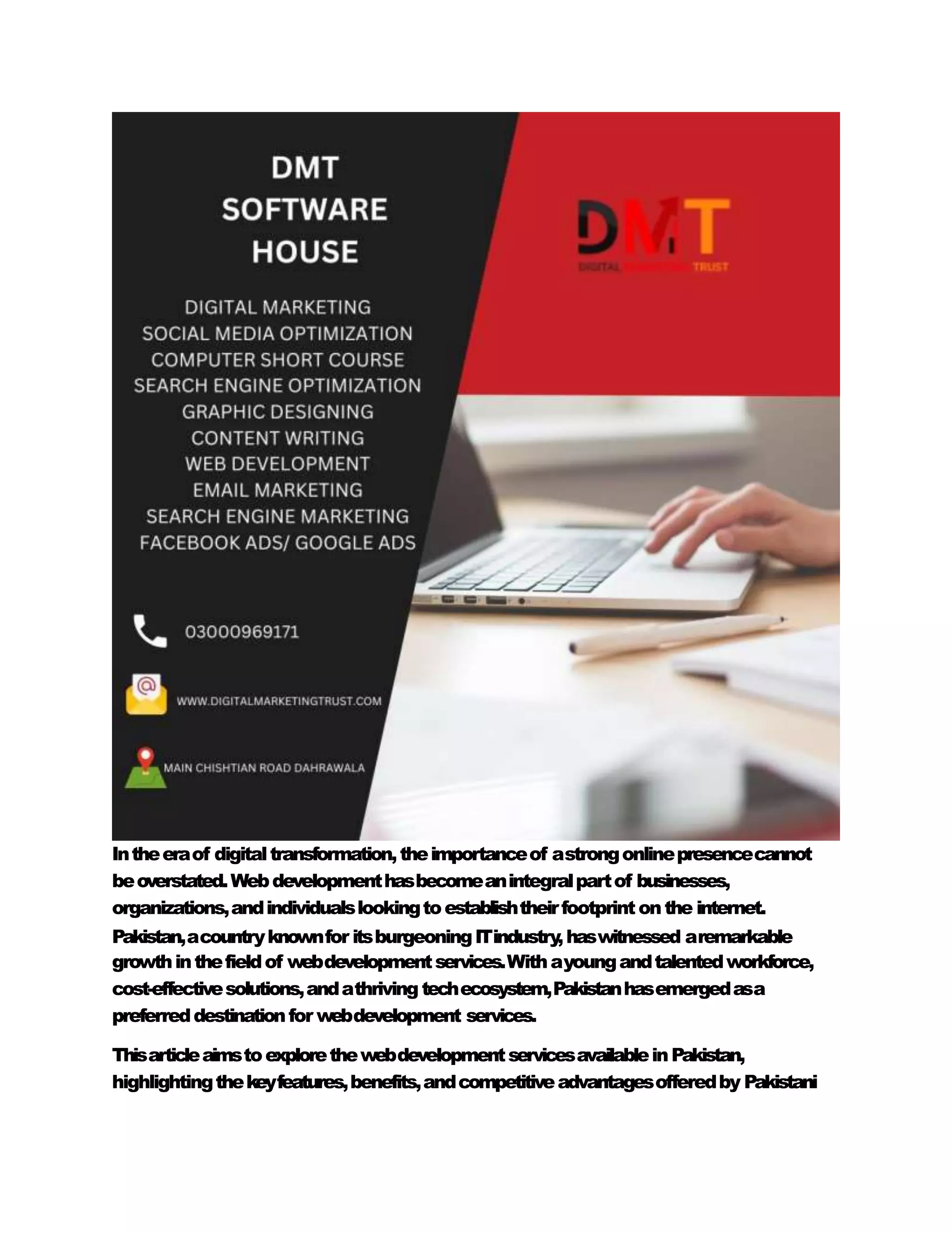 Pakistan's web development industry has experienced significant growth, driven by a skilled workforce, cost-effective solutions, and favorable government initiatives. The country offers a wide range of services, including website design, e-commerce solutions, and SEO optimization, making it an attractive destination for businesses seeking web development. With advantages such as affordability, English proficiency, and a time zone conducive to international collaboration, Pakistani web developers are well-positioned to support the increasing demand for digital transformation.