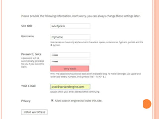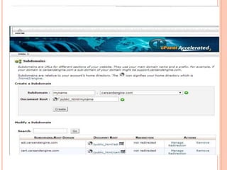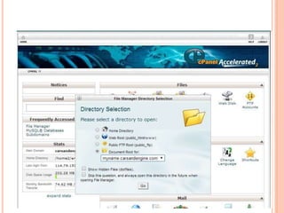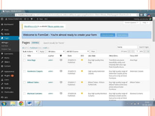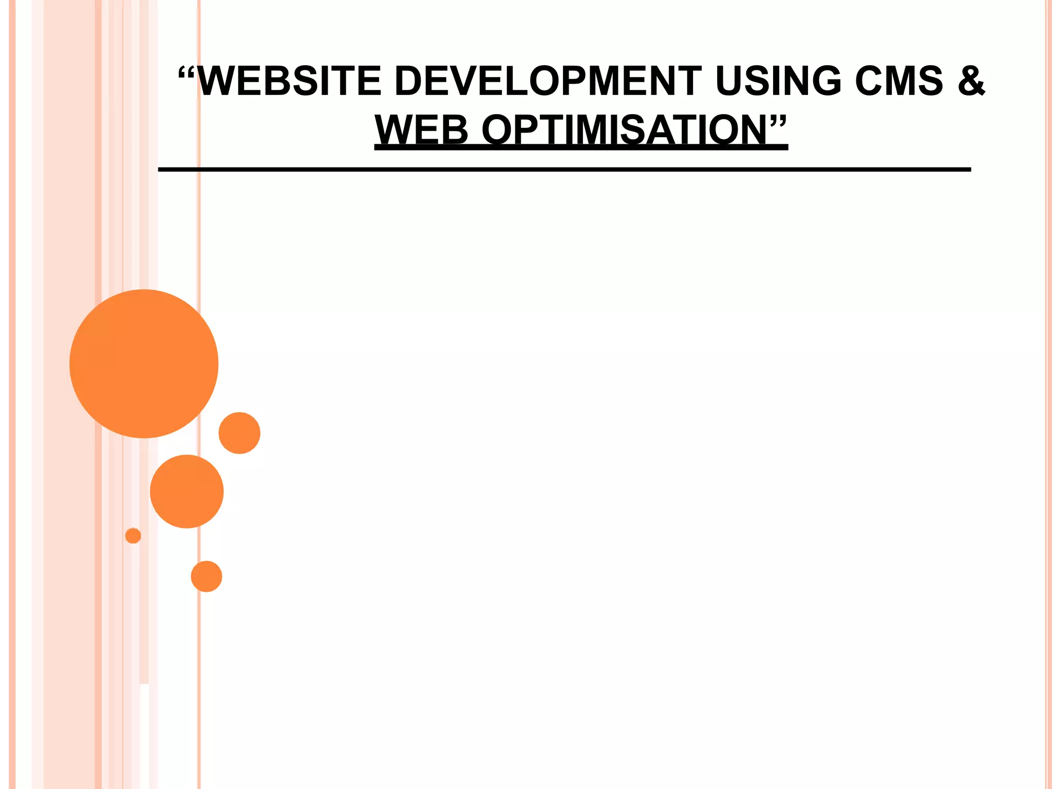 This document discusses website development using a content management system (CMS) and web optimization. It begins by outlining the objectives of designing a website that ranks well in search engines and can be rapidly developed. It then defines what a website and domain name are. The rest of the document discusses topics like the key points of website development, what a CMS is, how installing WordPress as a CMS can simplify development, and search engine optimization techniques like on-page and off-page optimization.