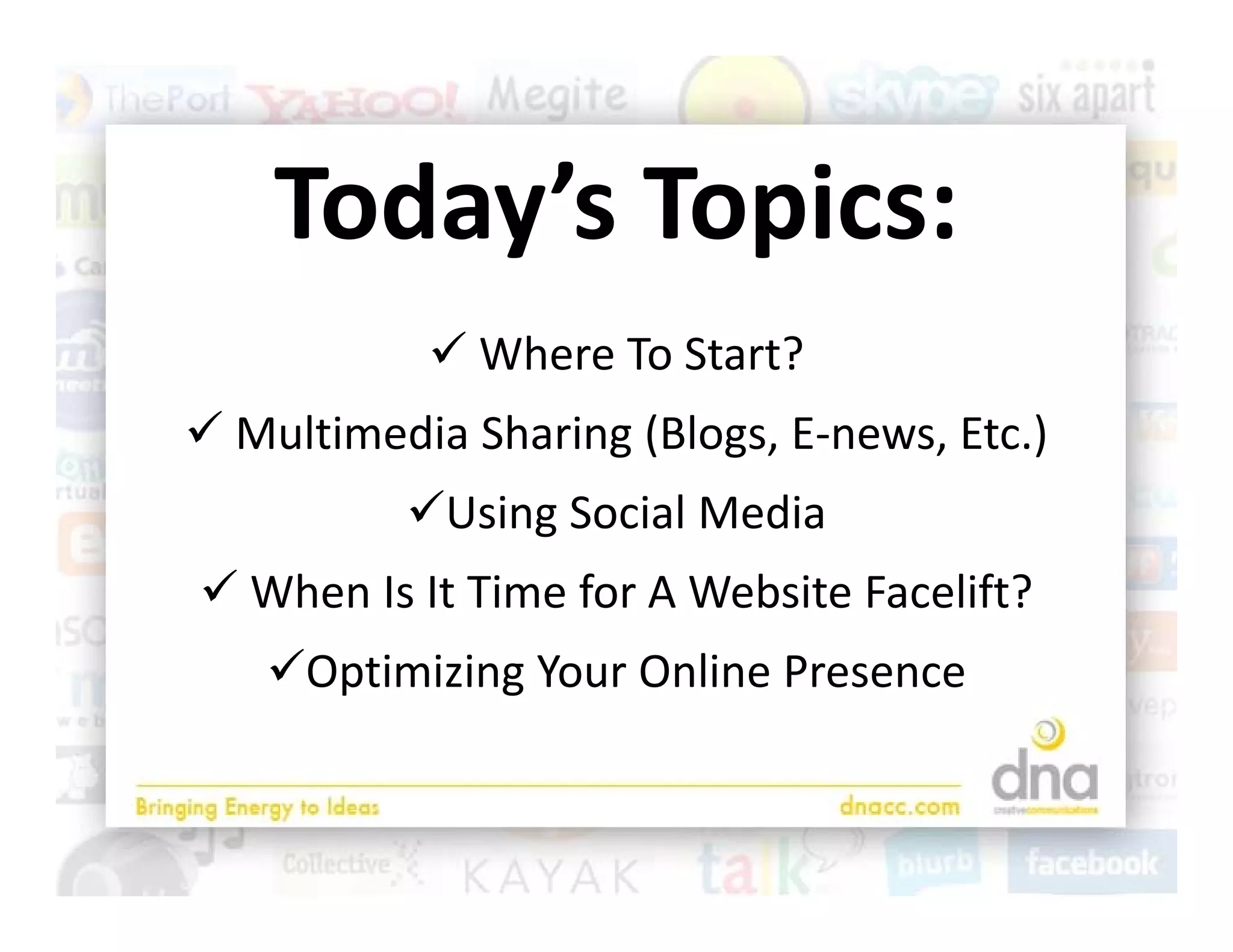The document discusses strategies for enhancing an organization's online presence, emphasizing branding, effective messaging, and the use of social media. It outlines best practices for websites and e-newsletters, encouraging consistency, usability, and engagement with audiences to build trust and support. Additionally, it highlights the significance of content in attracting visitors and optimizing search engine visibility.