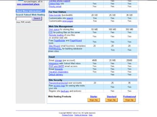 Web hosting involves companies that maintain servers to allow users to put websites on the internet. When choosing a web host, it is important to consider factors like data storage needs, technical support availability, uptime guarantees, security measures offered, and platform flexibility. Potential hosts should be contacted directly to assess customer service before signing up. Hidden fees, transfer limits, and lengthy contracts are things to watch out for.
