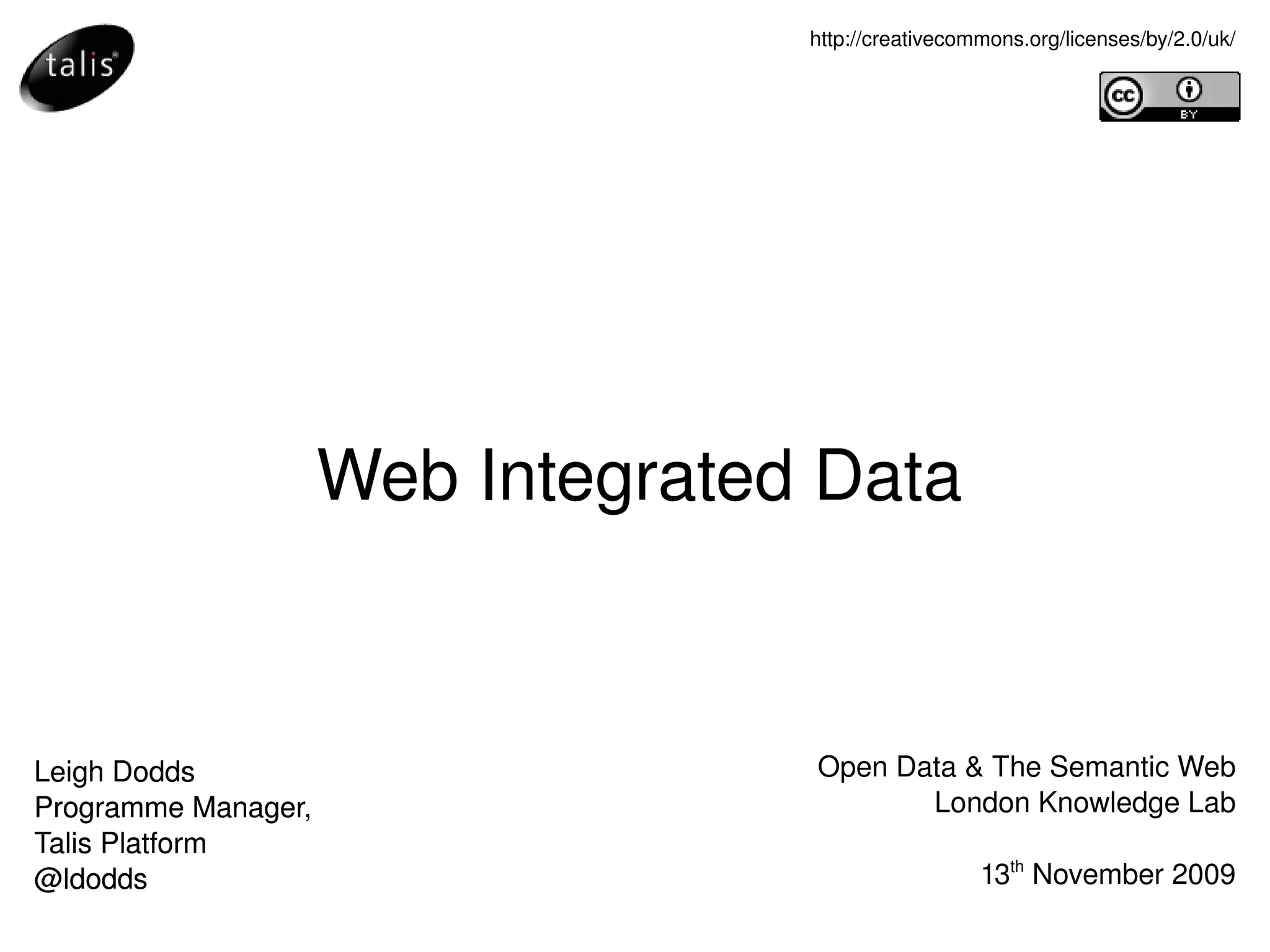 The document discusses different levels of integrating data with the web to maximize its utility. It outlines three stages of web integration: 1) publishing raw data online, organizing and licensing it; 2) making the data web accessible using open formats and APIs; 3) fully integrating data with the web by identifying things and linking them together using identifiers and relationships. The highest level of integration is Linked Data, which publishes both the data and data model using RDF to create a web of interconnected data that increases utility for both people and machines.