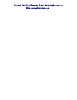 This document provides information about a 7-day web page design course offered by Learnem Group. It includes copyright information, instructions on how to ask questions or register for the paid course, and previews the topics that will be covered in each of the 7 lessons, including text formatting, headings, lists, links and images. Students are instructed to complete exercises at the end of each lesson and submit them to their tutor for feedback.