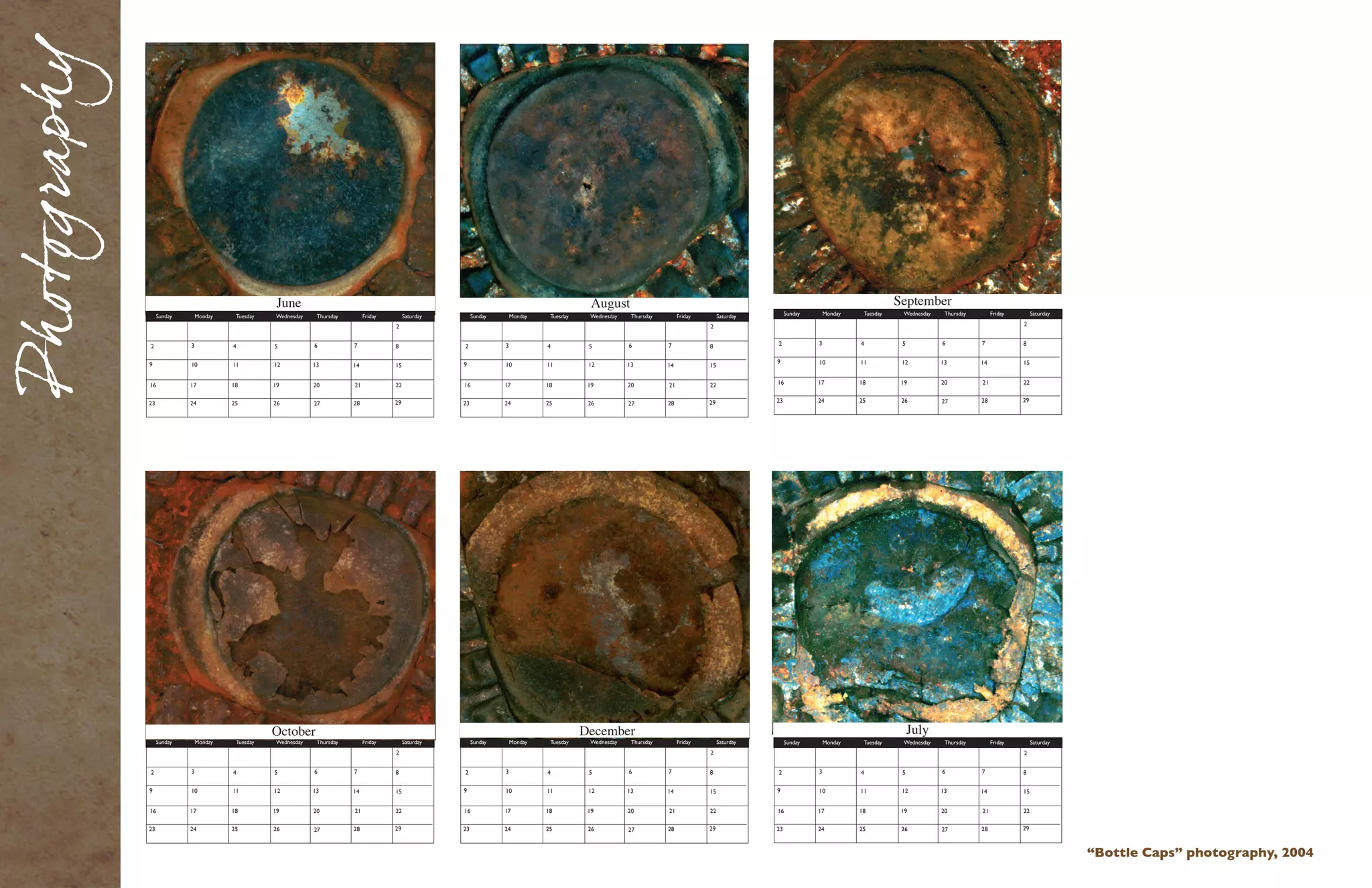 The document contains a calendar for the months of June, August, September, October, December, and July. Each day of the week is numbered 1-31 with some days left blank.