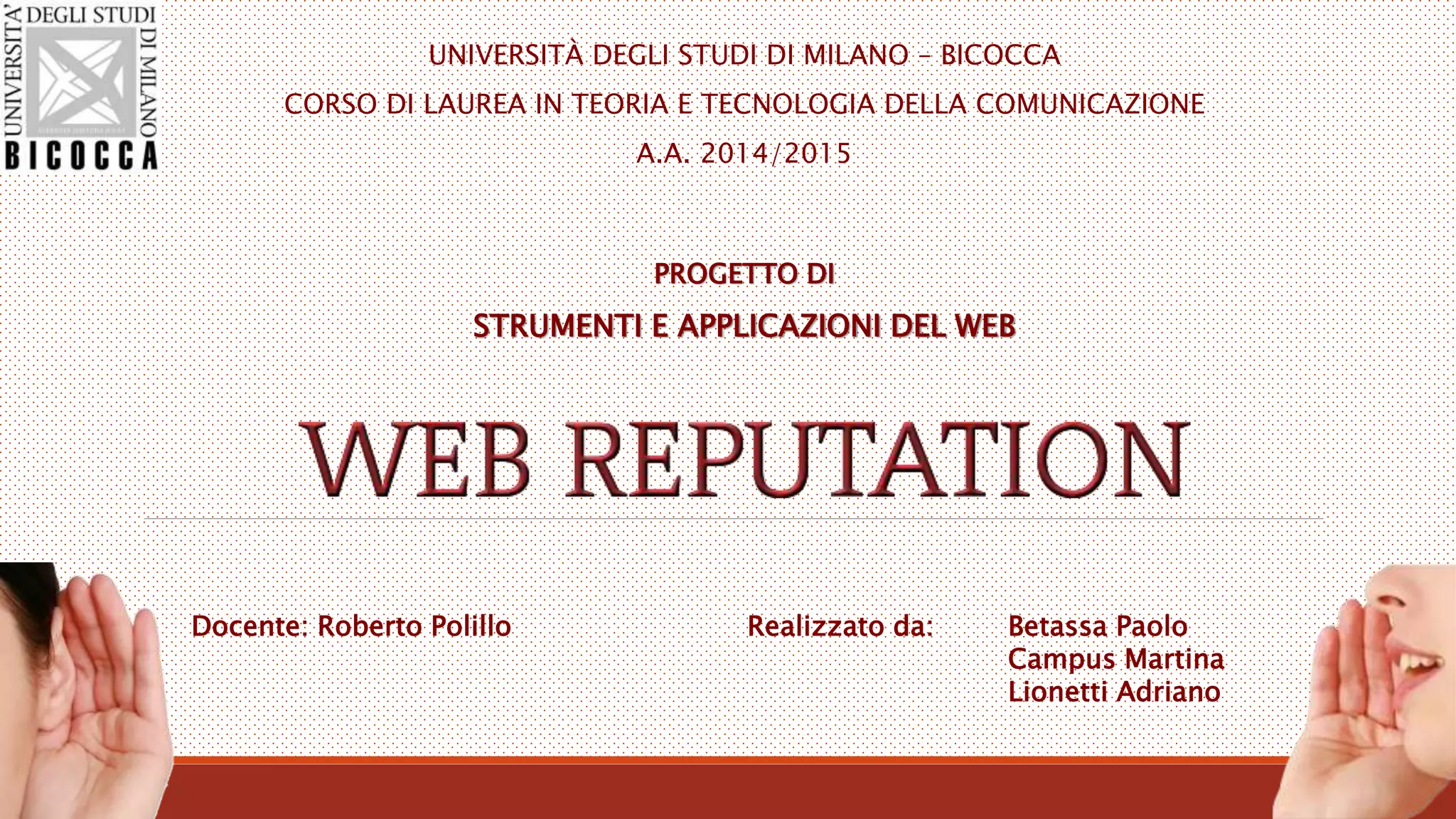 Il documento tratta della web reputation, definendola come l'immagine di un soggetto o un'impresa in rete, influenzata da informazioni pubbliche e interazioni sui social media. Esamina anche strategie per gestire la propria reputazione online, sottolineando l'importanza del sentiment e del monitoraggio delle opinioni, evidenziando strumenti come Mention, Google Alerts, Klout e Sumall. Inoltre, vengono presentati case studies che dimostrano l'importanza della comunicazione interattiva e della gestione proattiva dell'immagine digitale.