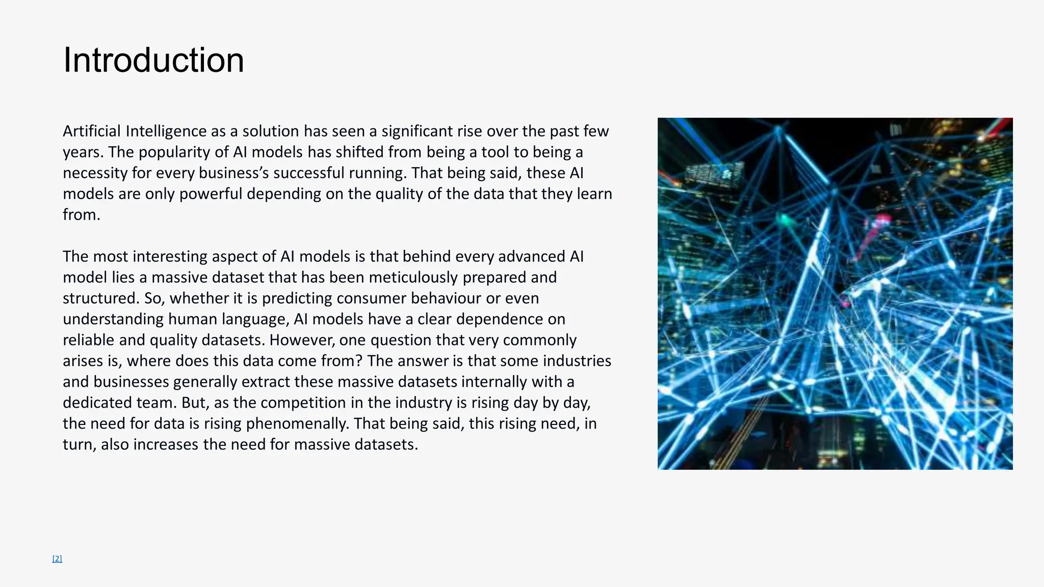 individuals can train their AI models on quality datasets. They can easily tap into the enormous space of publicly available data
