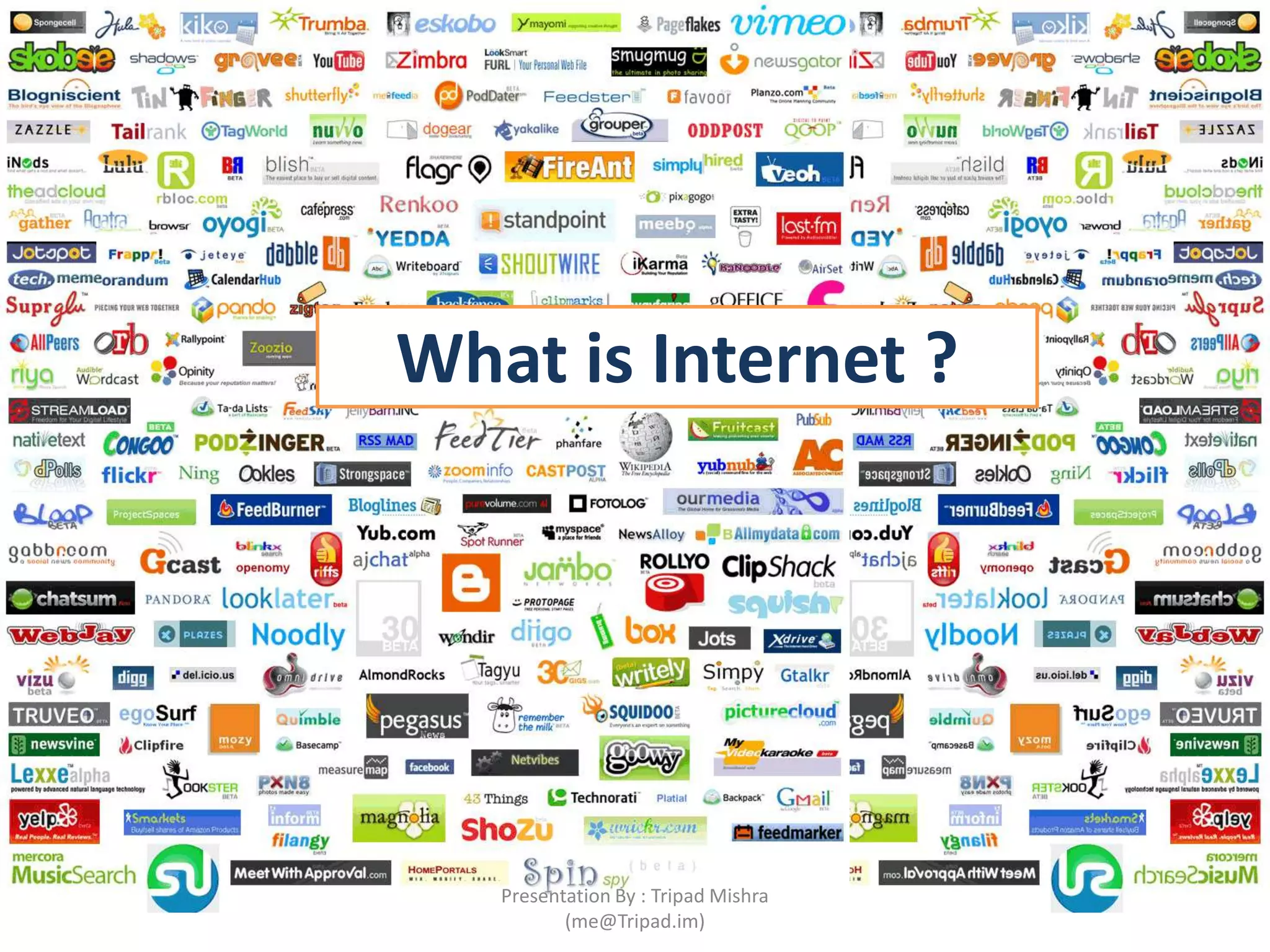 The document is a presentation about the internet and internet security. It defines internet as a global collection of networks connected together. It notes some key facts about the early history and growth of the internet. It also summarizes that internet users are identified by IP addresses and discusses what IP addresses are and how they work. The presentation goes on to discuss common internet activities and security risks online, providing tips for securing devices, browsers, passwords, and privacy settings.