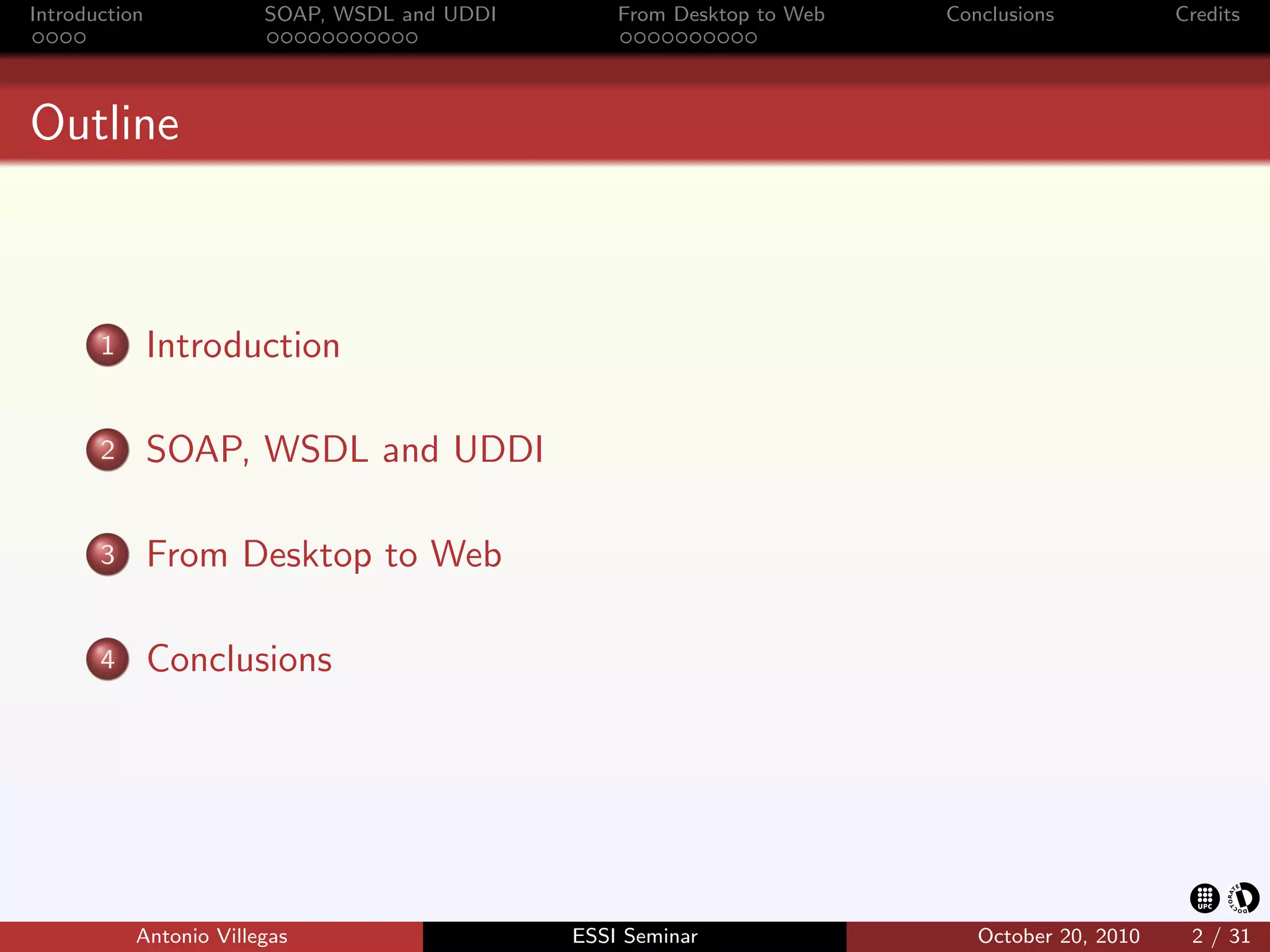 This document outlines a presentation on web services. It introduces key concepts like service-oriented architecture (SOA) and defines web services as a technology for application integration and interoperability based on open standards. The presentation focuses on the three main aspects of the web services framework: invocation using SOAP, description using WSDL, and discovery using UDDI. Examples of web services are also provided.
