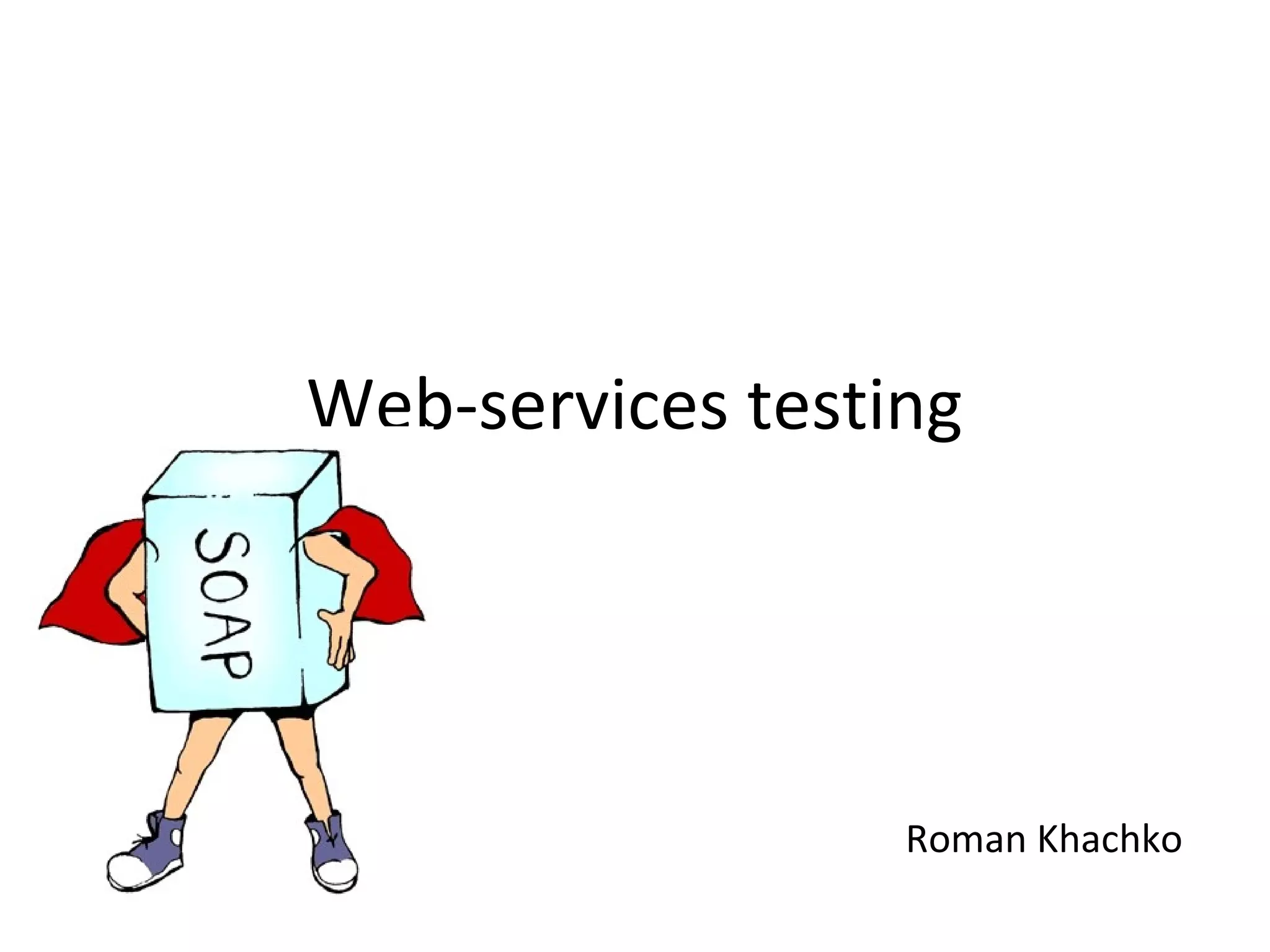 The document discusses various aspects of web services testing, including WSDL, testing approaches, and the benefits of test automation. It emphasizes the importance of creating complex scenarios, using automation tools, and continuous integration to enhance testing efficiency. The conclusion recommends leveraging QA knowledge and automation for improved product quality.