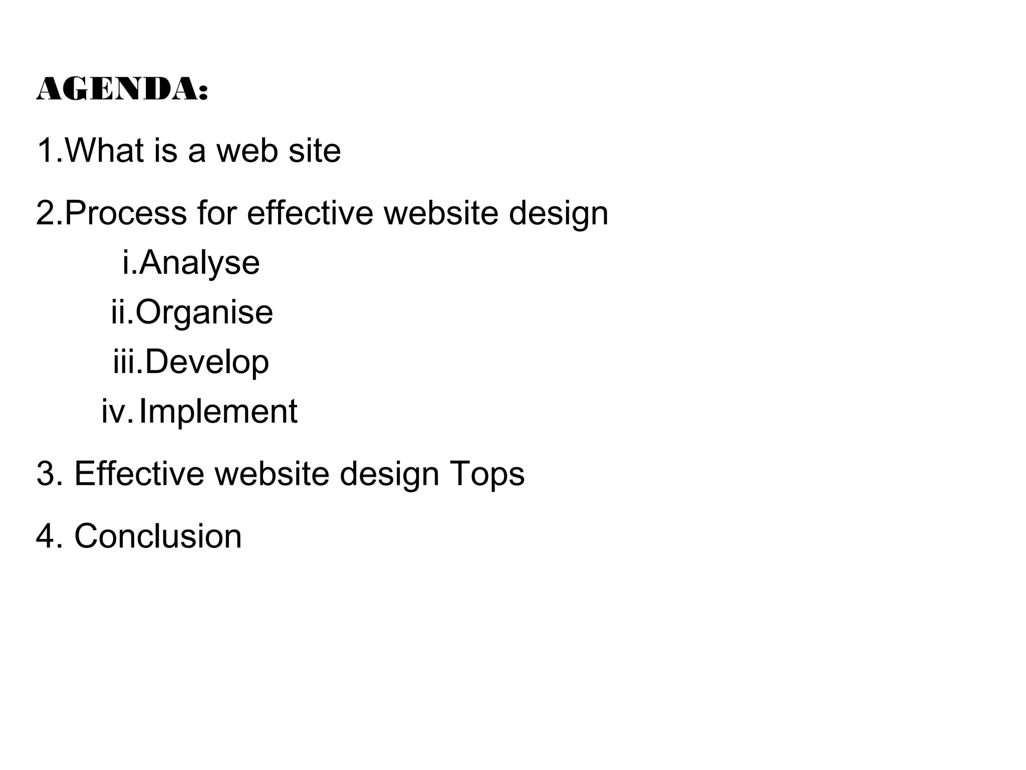 The document outlines the process for effective website design, including analyzing the content and target audience, organizing the navigation, content, page layout and design, developing the web page and site layout as well as graphics, and implementing the site by checking user interaction, uploading the site, and fine tuning. It also defines a website as an online location containing web pages that serves as a personal connection to the world, and notes that website design is different from other forms of publishing or communication.