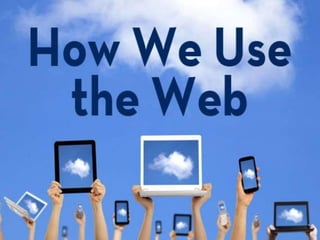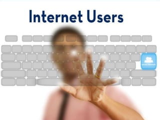 The documents provide statistics from surveys on internet usage in the United States in 2012. The surveys found that 81% of all adults used the internet, with slightly more men using it than women. Usage was highest among those aged 18-21 and 30-49 and decreased with age. Usage also decreased with lower income and education levels. By 2014, more people were expected to access the internet from smartphones than desktop computers.