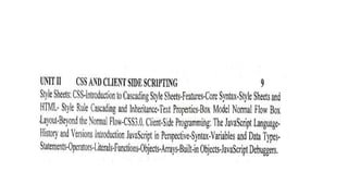 The document provides information on client-side programming and CSS. It defines client-side programming as code that runs in the browser and deals with the user interface. Some key points made about CSS include:
