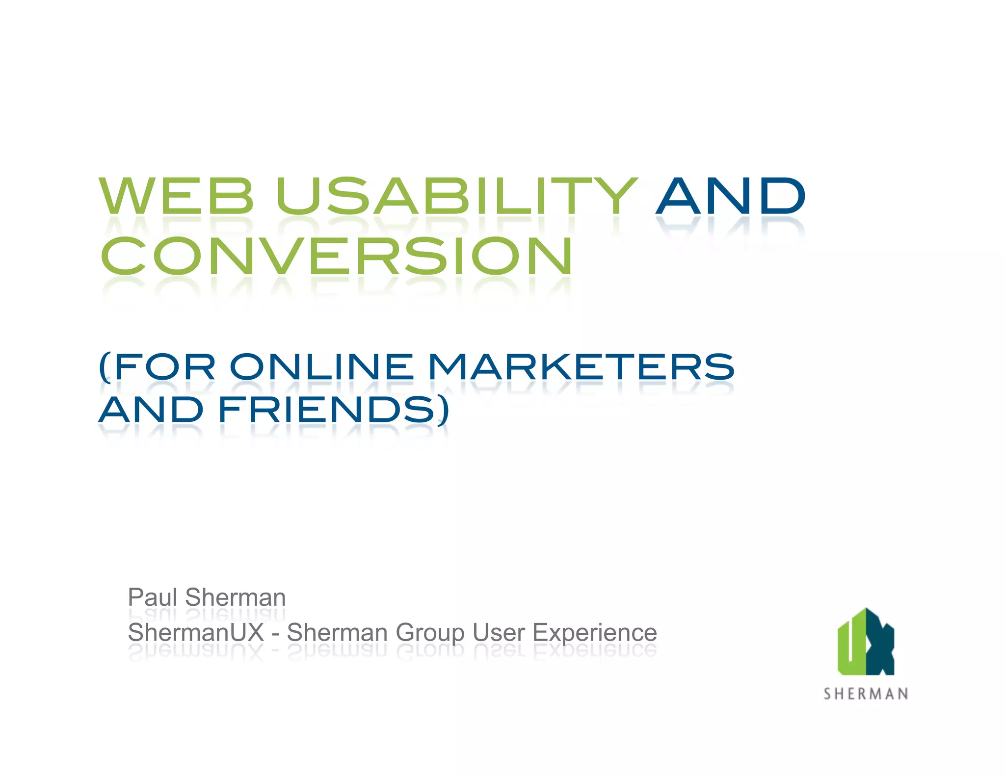 The document discusses usability and user-centered design. It begins with definitions of usability and its key components. It emphasizes understanding users by learning about their goals, workflows and needs in order to design products and services that are easy and satisfying to use. The document recommends taking a user-centered approach through research and design processes that focus on users throughout development.