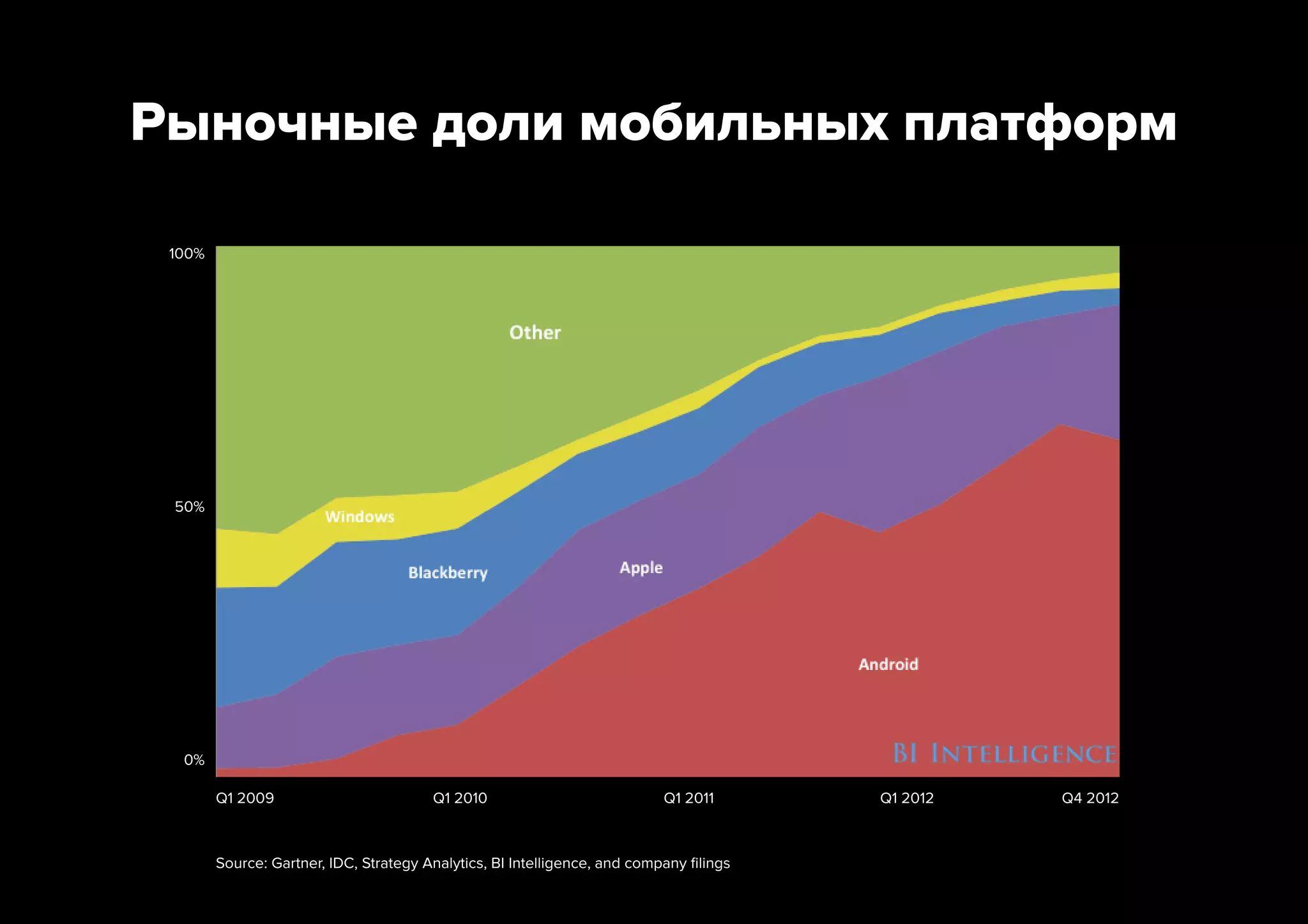Документ обсуждает сравнение мобильных веб-приложений и нативных приложений в медиа, обращая внимание на изменения в рыночных долях мобильных платформ за несколько лет. Указывается, что современные веб-приложения практически не уступают нативным в функционале, при этом выделяются преимущества веб-приложений, такие как отсутствие необходимости в загрузке и единая точка входа. Также упоминается о преимуществах разработки веб-приложений с точки зрения экономии времени и ресурсов.