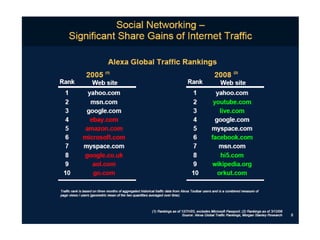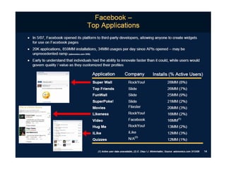 Facebook 簡歷 11/04/08College students, high school student, college alumni Target user 0.12B (85% of college students), Members 164M/day, 5 th among the world Daily Reach 2004/2/4 Founded