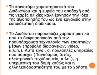 Το Διαδίκτυο παρουσιάζει χαρακτηριστικάΤο Διαδίκτυο παρουσιάζει χαρακτηριστικά