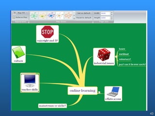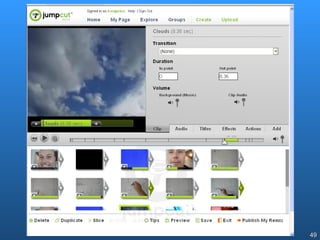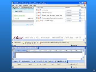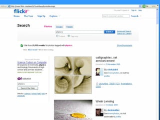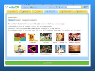 The document discusses how students and teachers are using Web 2.0 tools like blogs, social networks, photo sharing sites, and wikis. It notes that while these tools can support constructivism and knowledge creation, schools often initially use them as Web 1.0 tools just for disseminating information. The document also cautions that there are risks to consider when using free third-party tools and storing data externally, such as security, bandwidth requirements, and loss of access if the service ends.
