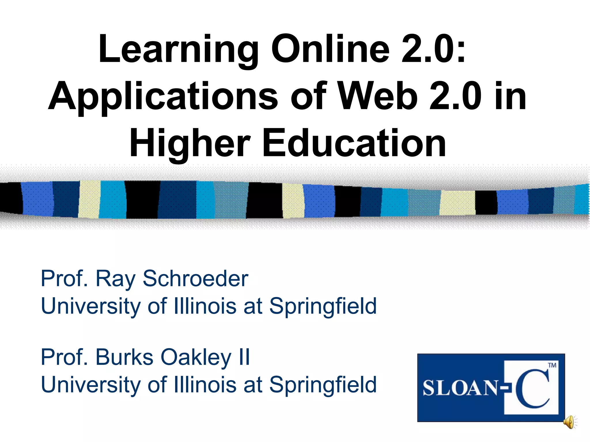 ![Ray Schroeder http://rayschroeder.googlepages.com/ [email_address] Burks Oakley II http://www.burksoakley.com/ [email_address] Learning Online 2.0: Applications of Web 2.0 in Higher Education](https://image.slidesharecdn.com/web20-intro-4-feb08-1202226786711016-2/75/Web2-0-Intro-4-Feb08-8-2048.jpg)