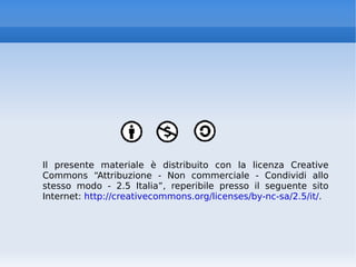 Il documento presenta un corso sul Web 2.0, evidenziando le caratteristiche di blog, wiki, social network e l'importanza della partecipazione attiva degli utenti. Si discute la transizione dal 'vecchio' web al Web 2.0, sottolineando l'innovazione attraverso l'assemblaggio di tecnologie esistenti per creare nuove applicazioni. Vengono inoltre analizzati aspetti tecnici, sociali e i contenuti generati dagli utenti nel contesto dell'evoluzione della comunicazione online.