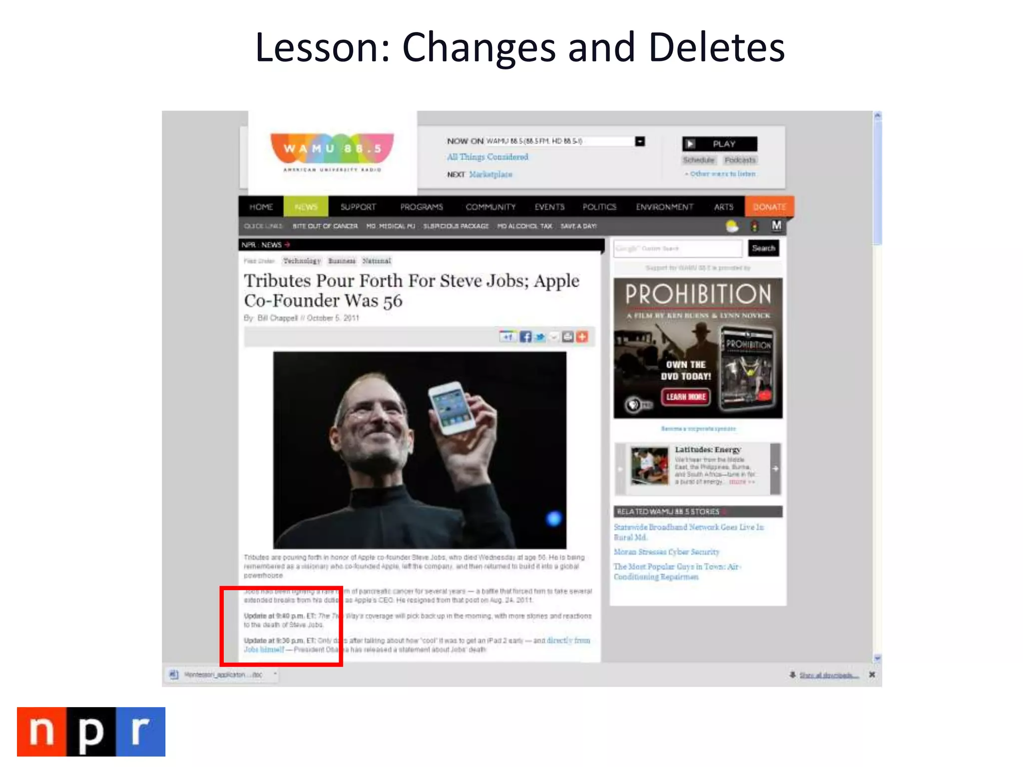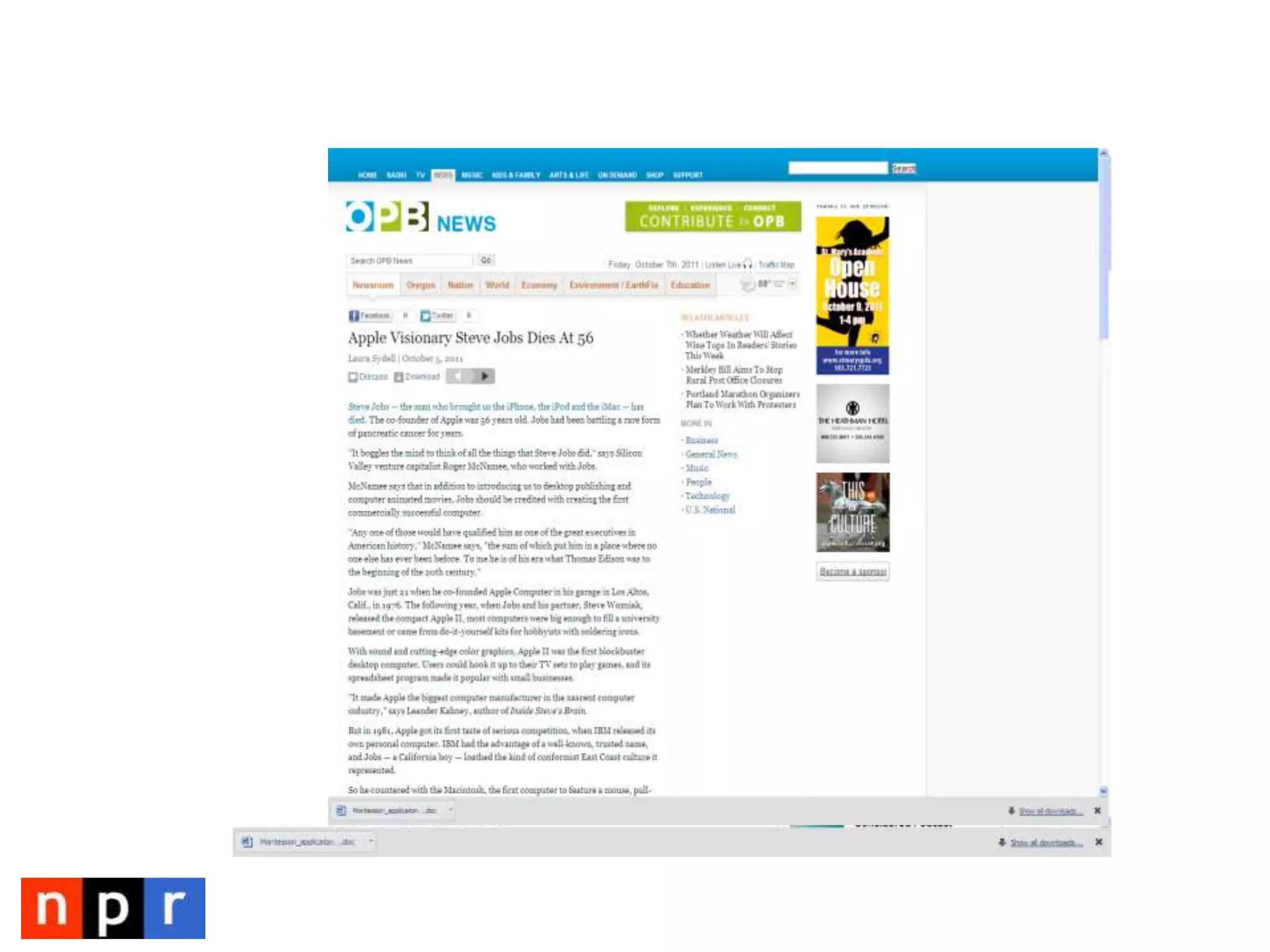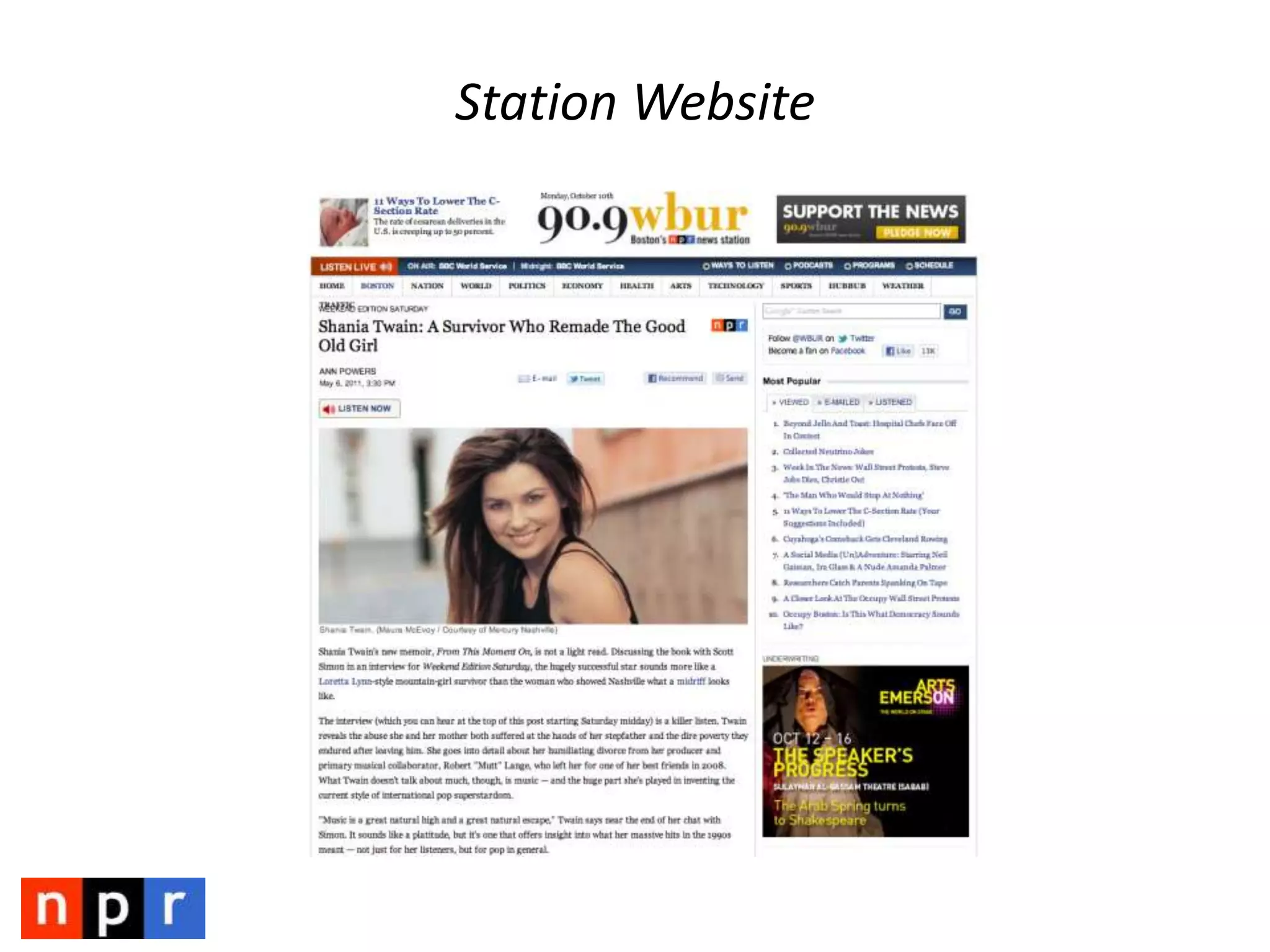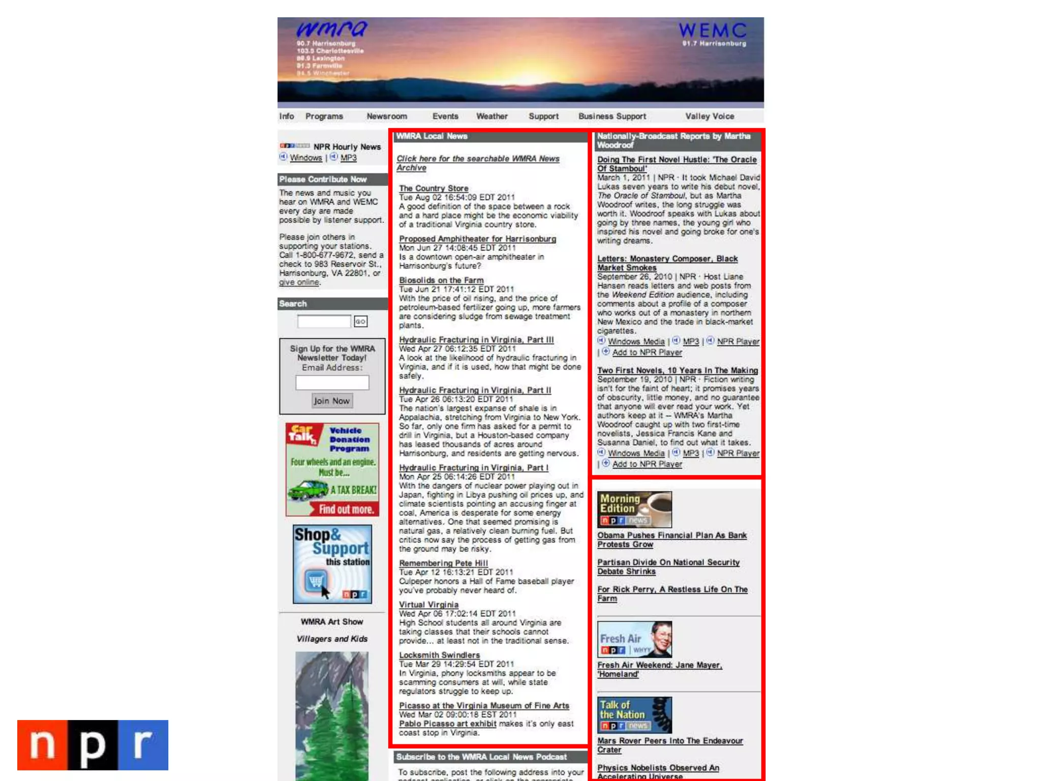 The document discusses NPR's digital media strategy, specifically focusing on their use of APIs and a crossmedia content management system known as COPE (Create Once Publish Everywhere). It outlines the goals and principles behind the NPR API, emphasizing improved development efficiencies and content distribution flexibility, as well as lessons learned from implementing the API. The text also highlights the architectural improvements and challenges associated with maintaining and adapting the API for mobile and partner applications.