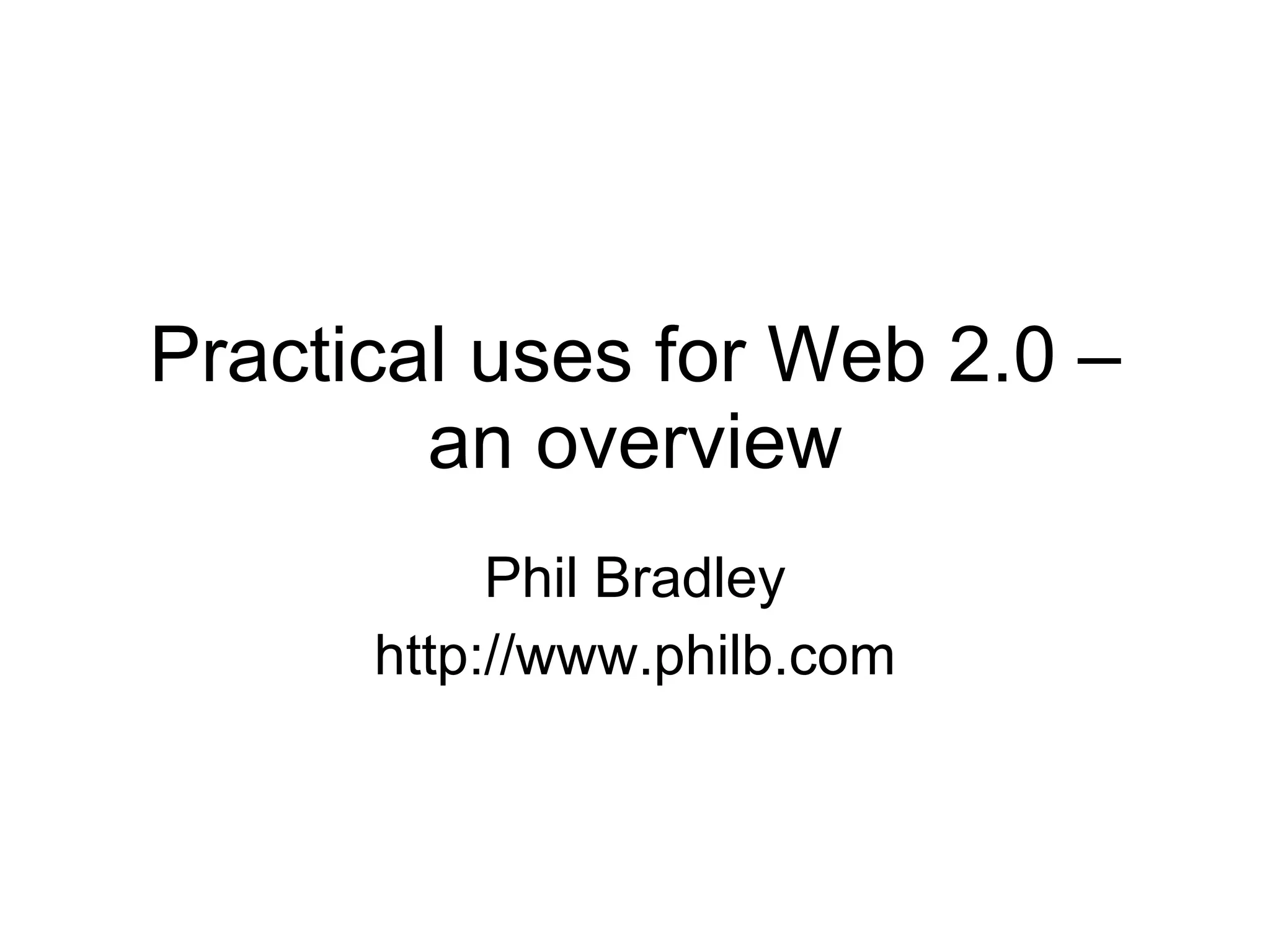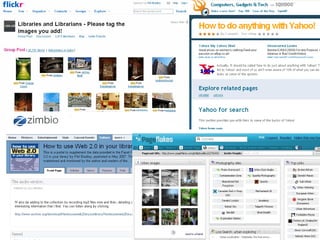 The document provides an overview of Web 2.0, highlighting its shift from static websites to interactive platforms that encourage collaboration, sharing, and community engagement. It contrasts Web 1.0 and Web 2.0, discussing practical applications such as blogs, wikis, podcasts, and social networking, as well as the use of RSS feeds and search tools. The author emphasizes that leveraging Web 2.0 technologies can enhance information sharing and communication, particularly for libraries and other organizations.