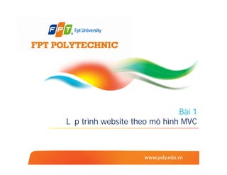 Tài liệu này hướng dẫn lập trình website theo mô hình MVC, giải thích cấu trúc và cách tổ chức mô hình MVC trong phát triển ứng dụng web. Nó bao gồm cách tạo và gọi hàm, chuyển hướng yêu cầu HTTP, cũng như giới thiệu về framework CakePHP và cách cài đặt nó. Tài liệu cung cấp thông tin hữu ích về kiến trúc CakePHP và cấu trúc thư mục của ứng dụng.