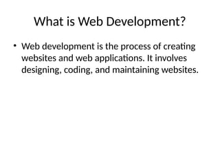 Web_Development_Presentation.pptx for bca 1. 2. What is Web Development?