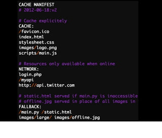 Firefox OS allows web applications to access device capabilities through standardized web APIs. This bridges the gap between native and web applications. Mozilla is proposing and approving APIs that give web apps access to features like vibration, geolocation, and more. Web apps can also work offline through caching. Developers can create hosted or packaged apps and debug them on the Firefox OS emulator or devices.