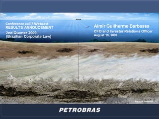 Petrobras announced strong financial results for the 2nd quarter of 2009. Oil production increased 6% compared to the first half of 2008 due to new platform startups. Lifting costs remained stable in US dollars despite higher oil prices. Net income doubled compared to the first quarter due to higher oil prices and sales volumes as well as cost cutting efforts. Capex continued to grow significantly, supported by expanding access to development banks and the capital market.