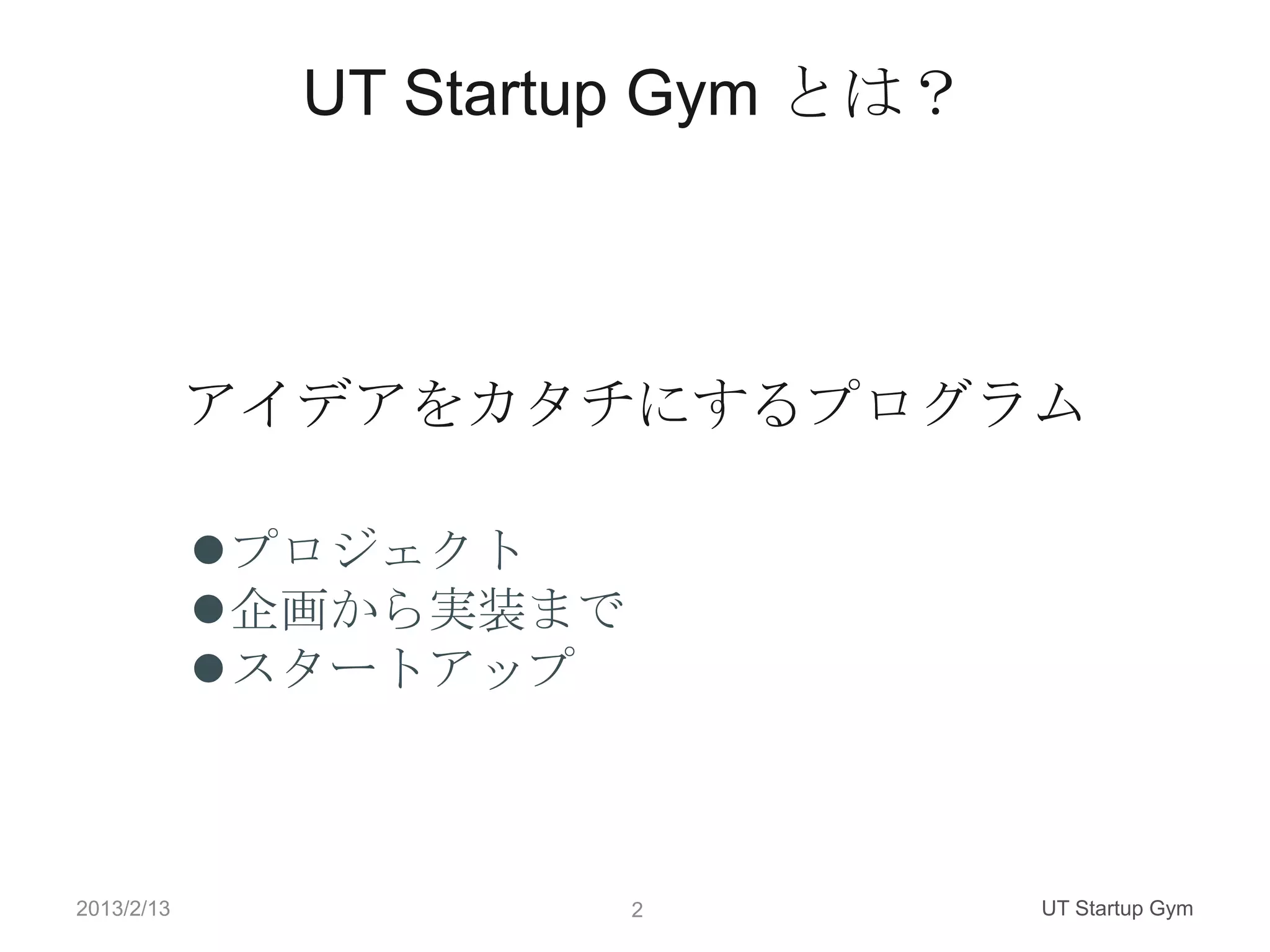 UT Startup Gym とは @第2期製品発表 More from Shuhei Iitsuka