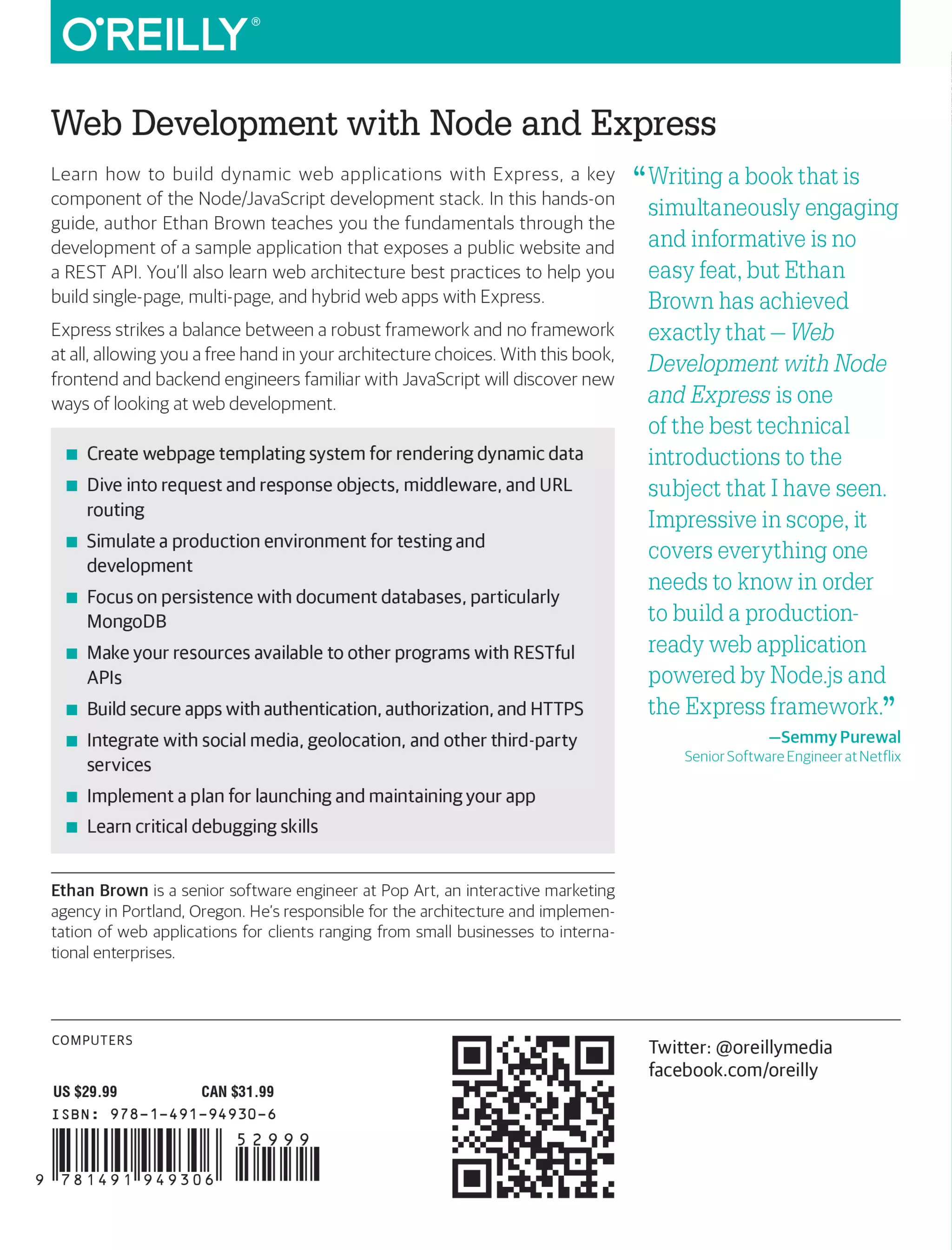 This book is an introduction to web development using Node.js and Express. It covers getting started with Node.js, using Express to build web servers and applications, templating with Handlebars, routing, databases and persistence with MongoDB, security, testing, deployment and more. The book is intended for web developers looking to learn backend development with Node.js and Express.