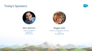 The document presents a webinar discussing five innovative Lightning components for Salesforce, highlighting their benefits and implementation strategies. It emphasizes the use of these components to enhance user experiences in the Salesforce environment, including features like sharing records, quick navigation, and custom links. Additionally, it addresses potential risks and uncertainties related to forward-looking statements in the context of Salesforce's operational strategy and product offerings.