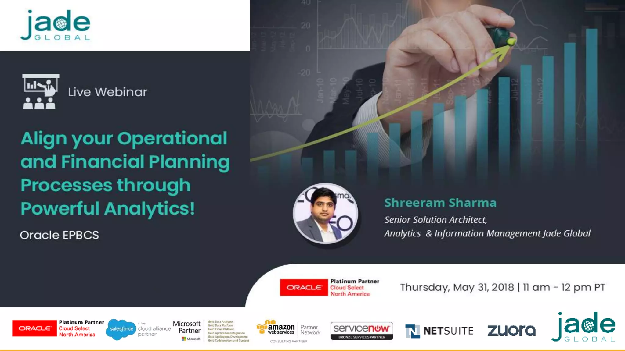 The document provides information about a webinar on Oracle Enterprise Performance Planning and Budgeting Cloud Service (EPBCS). It includes an offer of 50% off a health check for webinar attendees, which would include a requirements review, fit-gap analysis, and system assessment. The webinar agenda covers an overview of Jade Global's analytics and information management practice, out-of-the-box EPBCS configuration, incremental enablement approaches, business processes, design considerations, and a question and answer section.