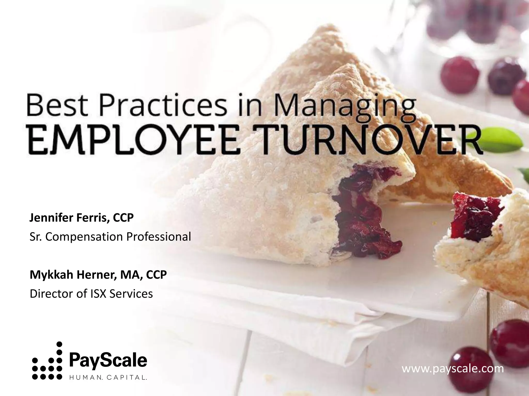The document discusses employee turnover, defining it as the rate at which employees leave and are replaced, and distinguishes between good and bad turnover. It explores common myths surrounding turnover, the importance of corporate culture, and the impact of turnover on business performance and costs. Finally, it offers strategies for developing effective compensation plans to enhance retention and addresses immediate actions organizations can take to improve their turnover rates.