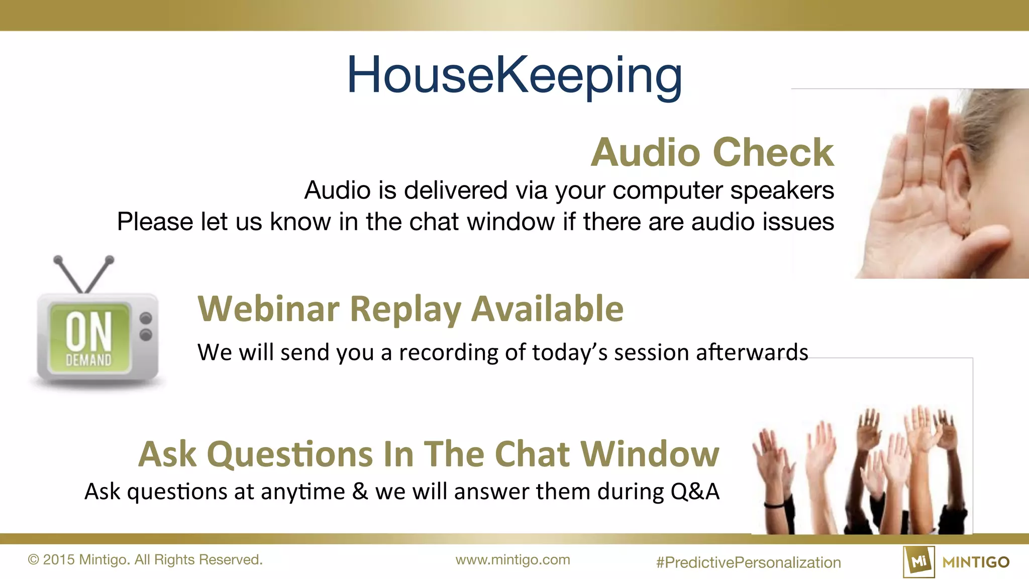 This document presents an overview of predictive marketing and analytics aimed at enhancing customer experiences through personalized messaging. It discusses the Mintigo enterprise predictive marketing platform and the importance of understanding ideal customer profiles using various data indicators to drive more effective marketing strategies. It emphasizes the value of personalization in improving conversion rates and overall customer engagement.