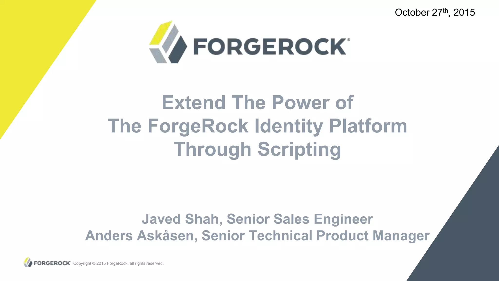 The document outlines the capabilities and features of the ForgeRock Identity Platform, emphasizing its extensibility and support for digital transformation in identity security. It includes technical details about its deployment, configuration, and scripting functionalities, highlighting the platform's innovations in identity management and authentication. Additionally, it describes the company’s growth, customer base, and international presence since its founding in 2010.