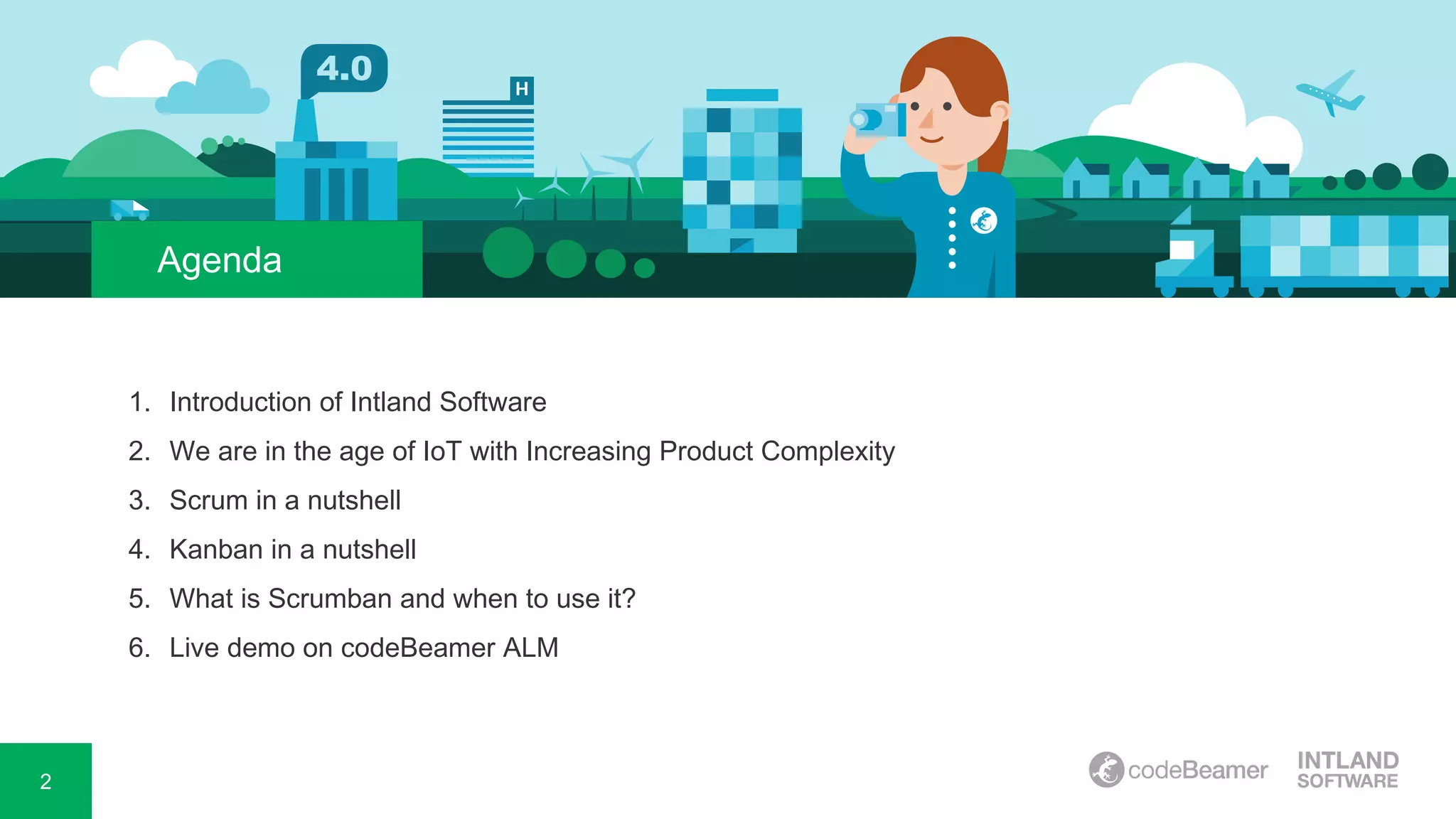 The document discusses the distinctions and applications of Scrum, Kanban, and Scrumban within project management, particularly in the context of increasing product complexity due to the Internet of Things (IoT). It introduces Intland Software and its Codebeamer ALM tool while outlining the fundamental principles and processes of each methodology. Additionally, it highlights when to use Scrumban, particularly for event-driven and maintenance work.