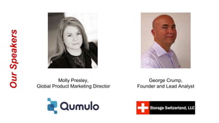 The document discusses the evolving landscape of unstructured data storage, highlighting the challenges and limitations of traditional NAS and object storage solutions. It advocates for a next-generation NAS system that provides high performance, scalability, and seamless cloud integration, offering real-time visibility and control over file data. Qumulo is presented as a modern solution that unifies on-premises and cloud storage, addressing the needs of today’s data environment.