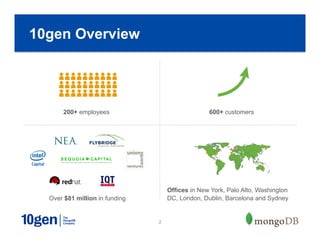 The document discusses the rise of NoSQL databases, particularly MongoDB, highlighting its advantages over traditional relational databases in scalability, performance, and agility for developers. It notes the challenges faced by relational databases in handling the volume and variety of modern data and emphasizes successful use cases of MongoDB in various organizations. Additionally, it provides insights into job trends favoring NoSQL technologies and the shift in application development practices towards agile methodologies.