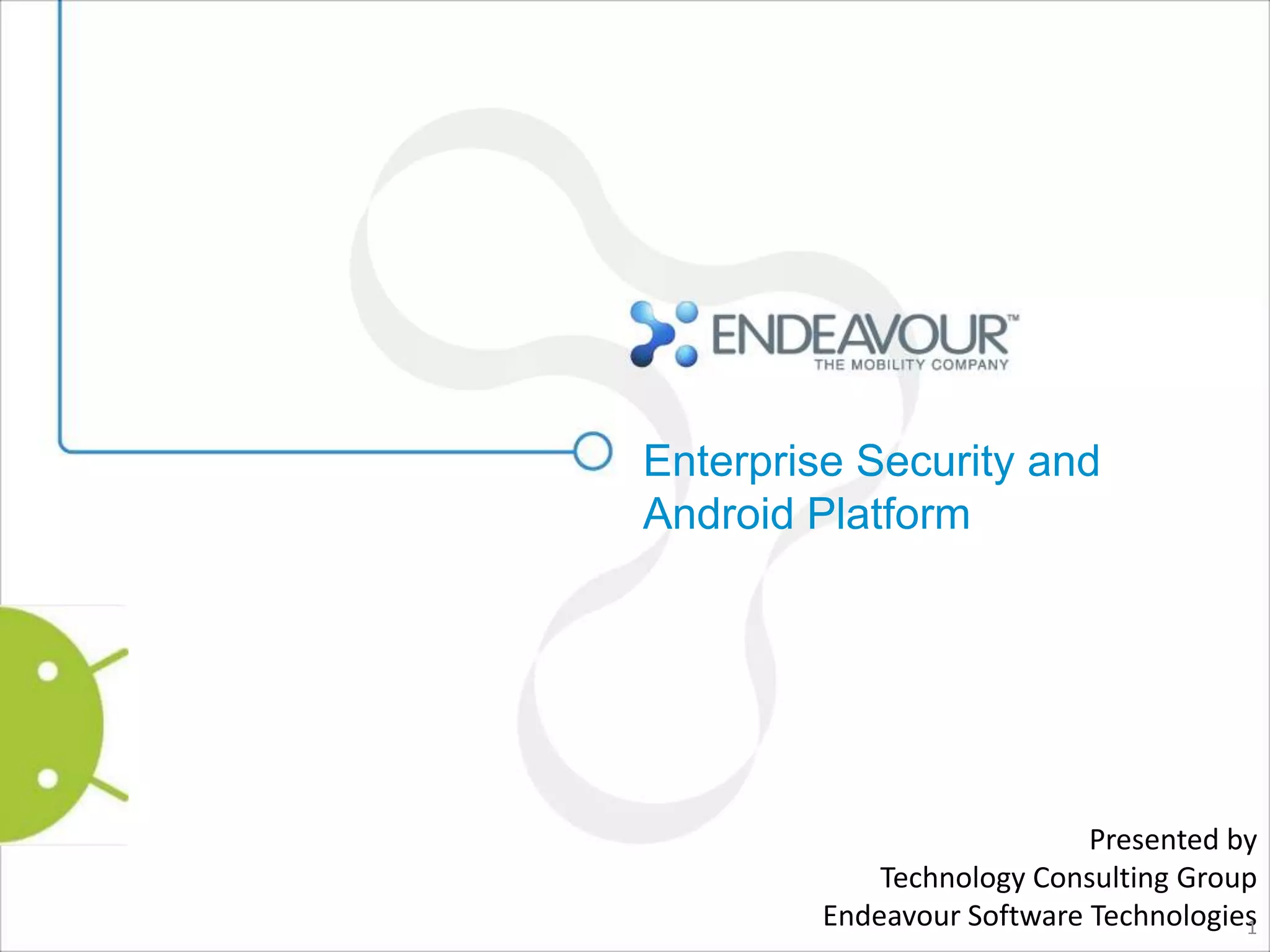 This document provides an overview of enterprise mobility and mobile security, with a focus on the Android platform. It discusses best practices for secure software development and the Android security architecture. The document outlines Android's permission-based security model and sandboxing approach. It also examines Android's attack surfaces and how enterprises can leverage features in newer Android versions like remote wiping, encryption, and device administration policies. The presentation concludes with an invitation for questions.