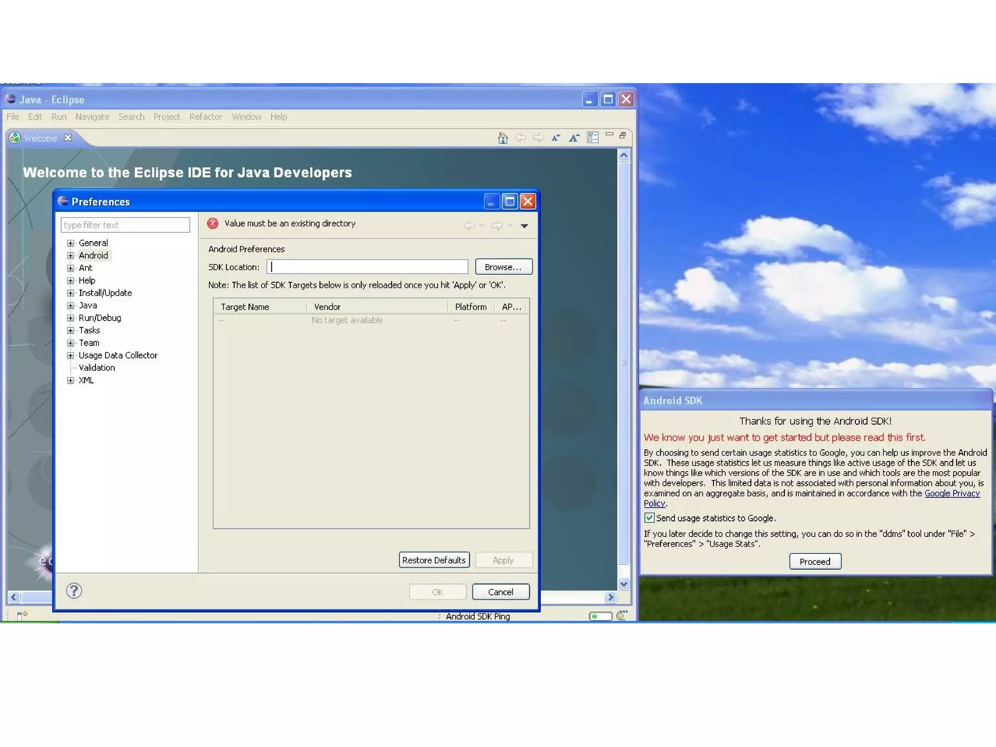 The document outlines a webinar about Google Android SDK, hosted by Sree from Schogini Systems, covering topics such as Android's definition, SDK setup, and development tools. It provides installation instructions for Java, the Android SDK, and Eclipse IDE. Additionally, it highlights Schogini's milestones and emphasizes that no prior mobile development experience is necessary for participants.
